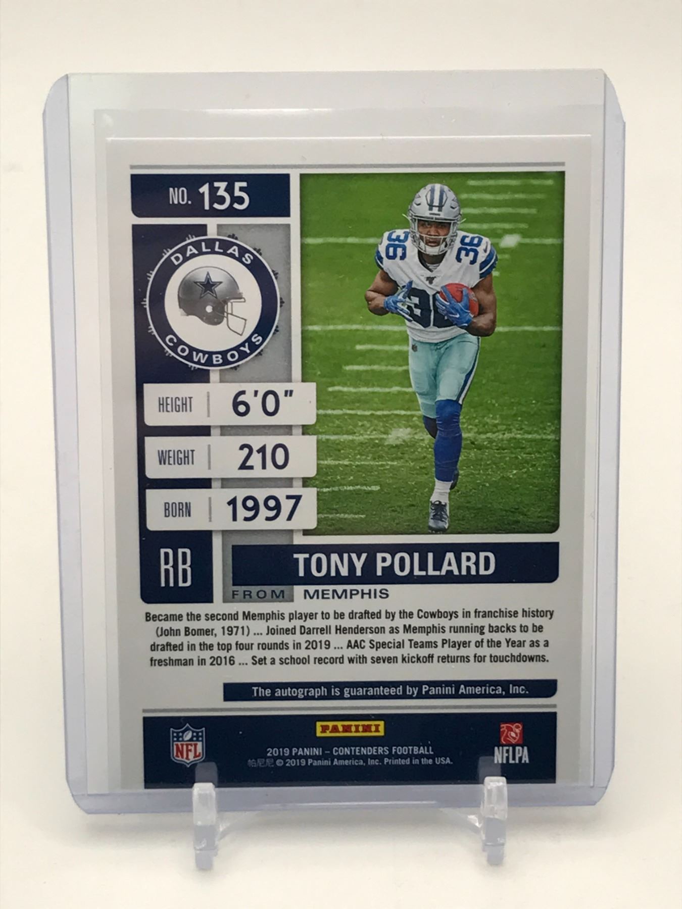 Lot 7 2019 PANINI CONTENDERS FOOTBALL TONY POLLARD SIGNED ROOKIE TICKET TRADING CARD - PANINI COA