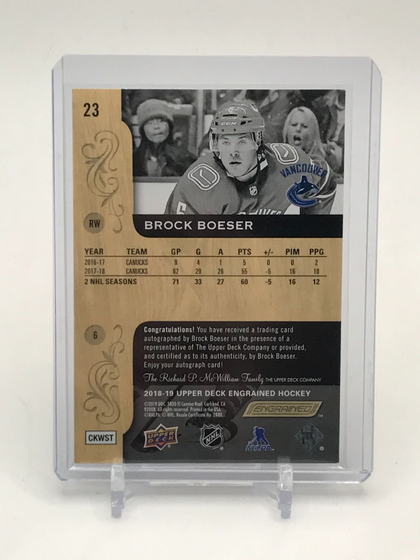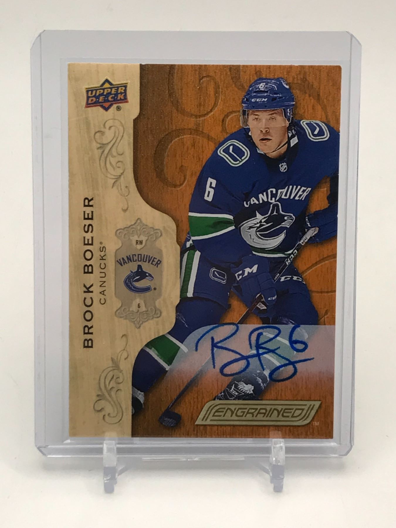 Lot 23 2018-19 UPPER DECK ENGRAINED HOCKEY BROCK BOESER SIGNED TRADING CARD - UPPER DECK COA