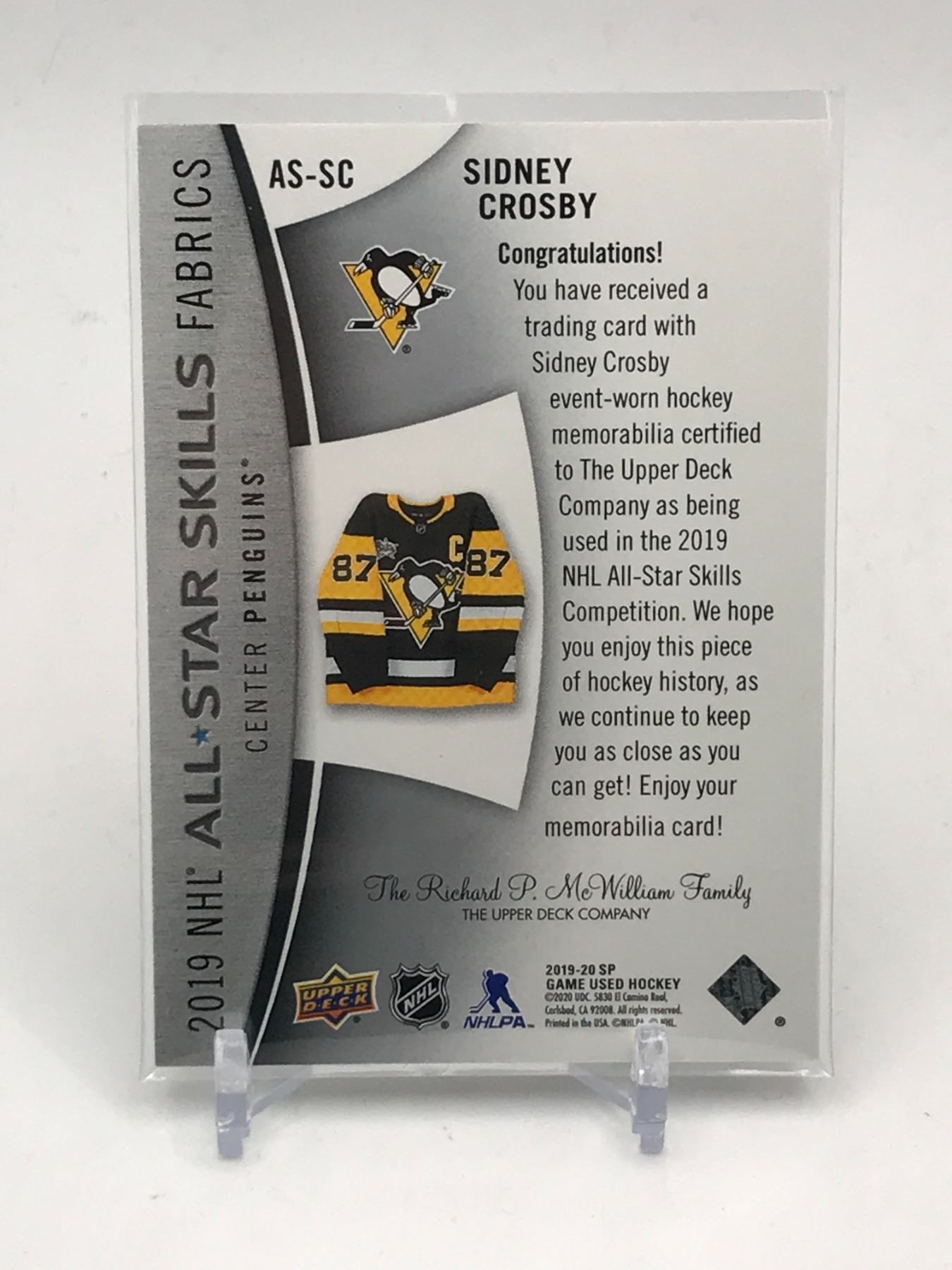 Lot 32 2019-20 UPPER DECK SP GAME USED HOCKEY SIDNEY CROSBY SIGNED PATCH TRADING CARD