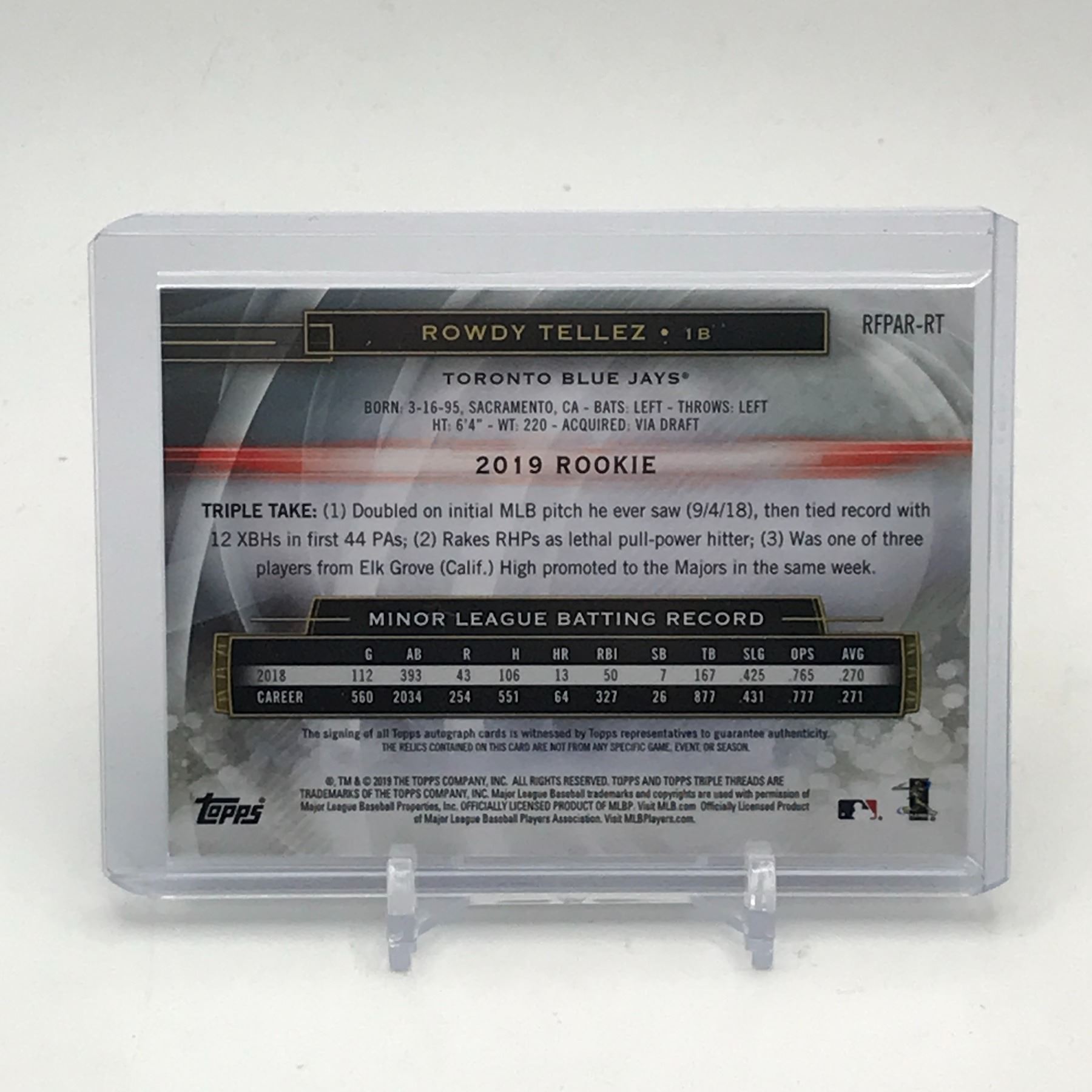 Lot 36 2019 TOPPS ROWDY TELLEZ SIGNED DUAL PATCH ROOKIE TRADING CARD