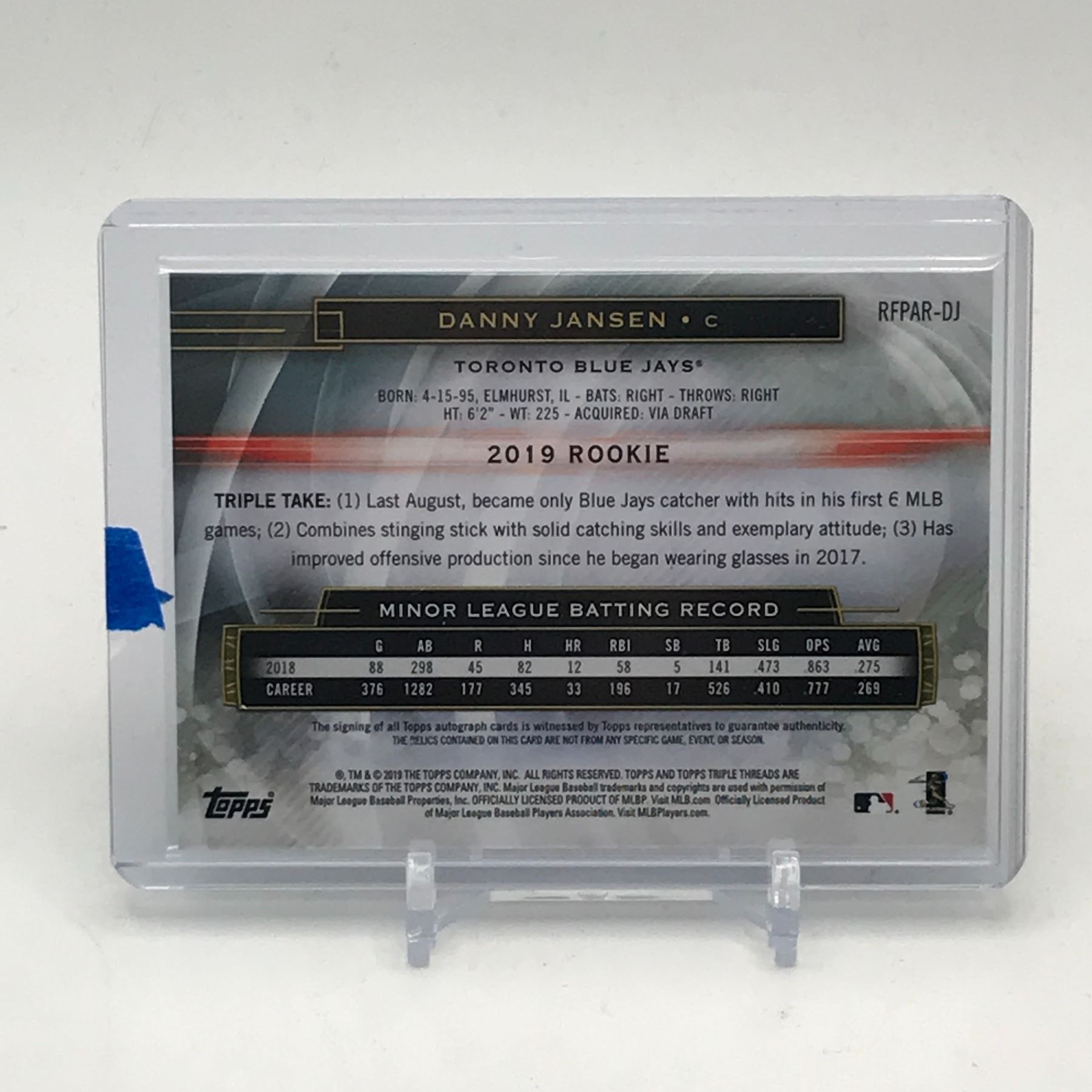 Lot 38 2019 TOPPS DANNY JANSEN SIGNED DUAL PATCH TRADING CARD