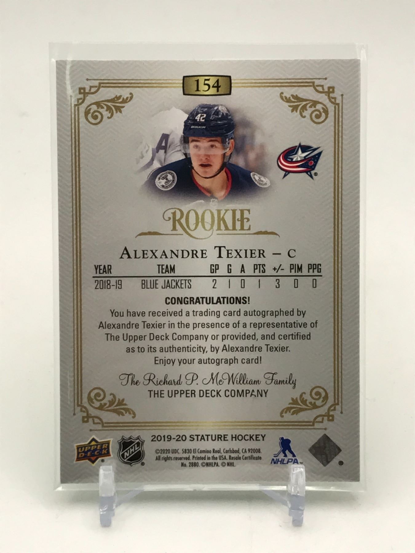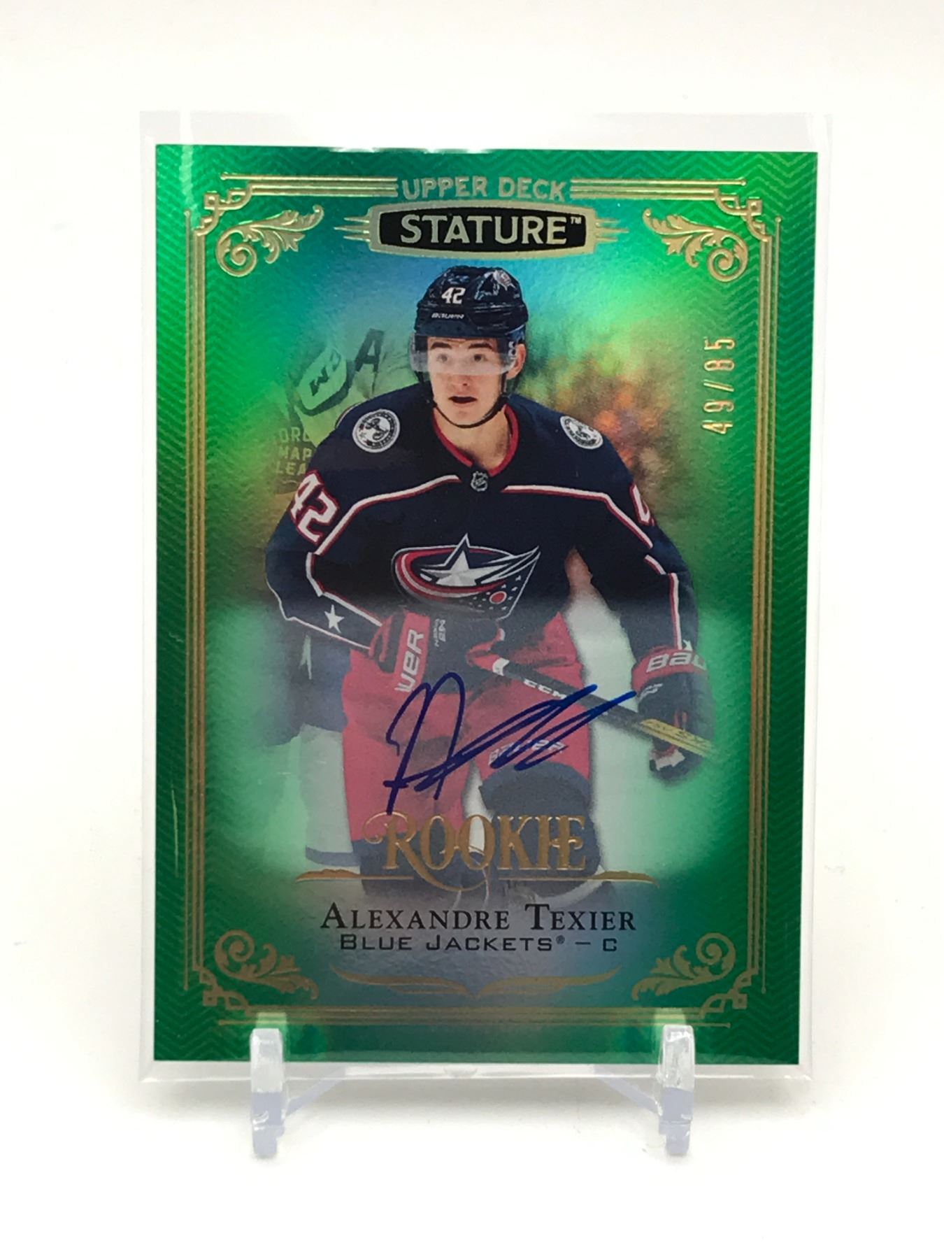 Lot 173 2019-20 UPPER DECK STATURE HOCKEY ALEXANDRE TEXIER SIGNED TRADING CARD 49/85