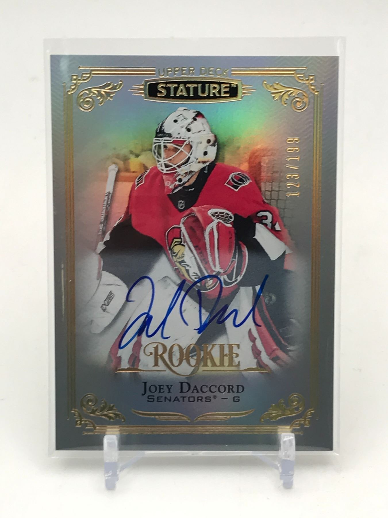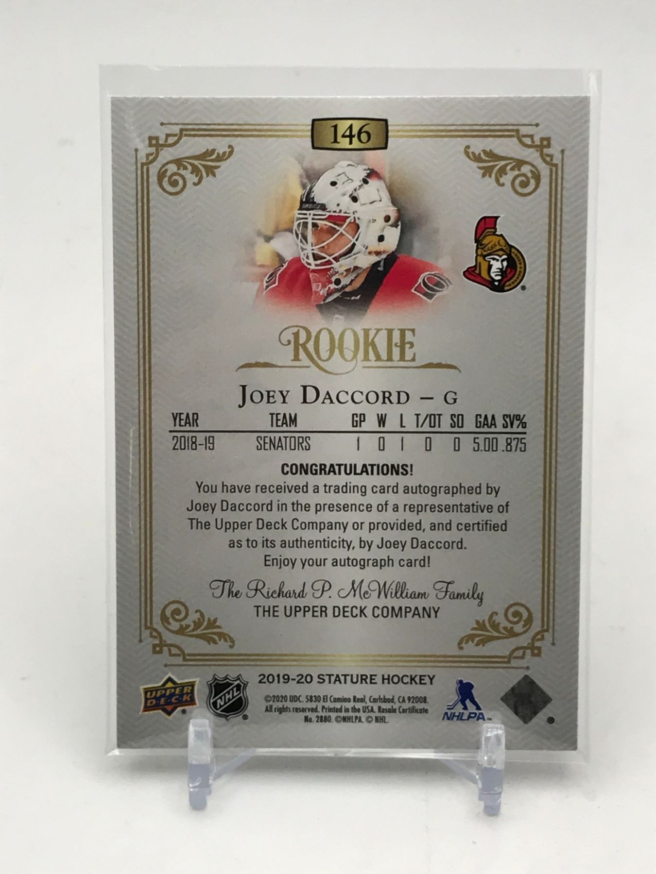 Lot 174 2019-20 UPPER DECK STATURE HOCKEY JOEY DACCORD SIGNED TRADING CARD 123/199