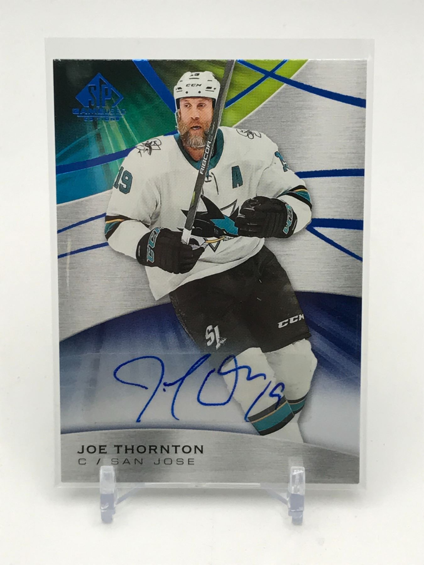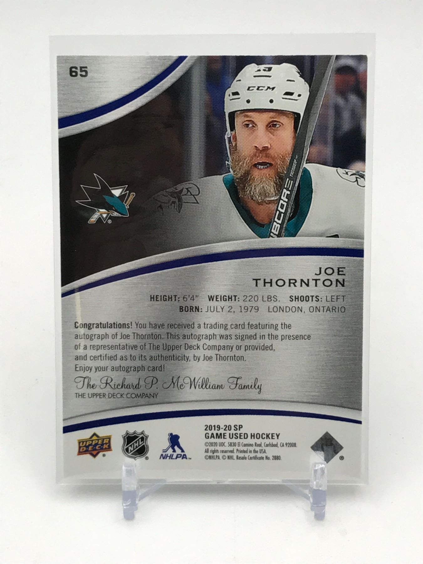 Lot 189 2019-20 UPPER DECK SP GAME USED HOCKEY JOE THORNTON SIGNED TRADING CARD