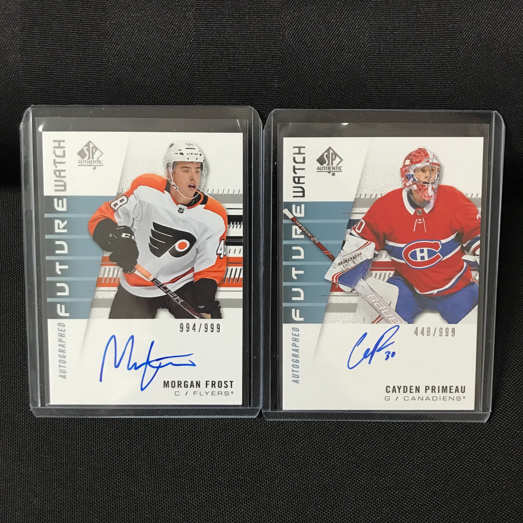 Lot 218 LOT OF 2 2019-20 UPPER DECK SP AUTHENTIC HOCKEY SIGNED TRADING CARDS /999