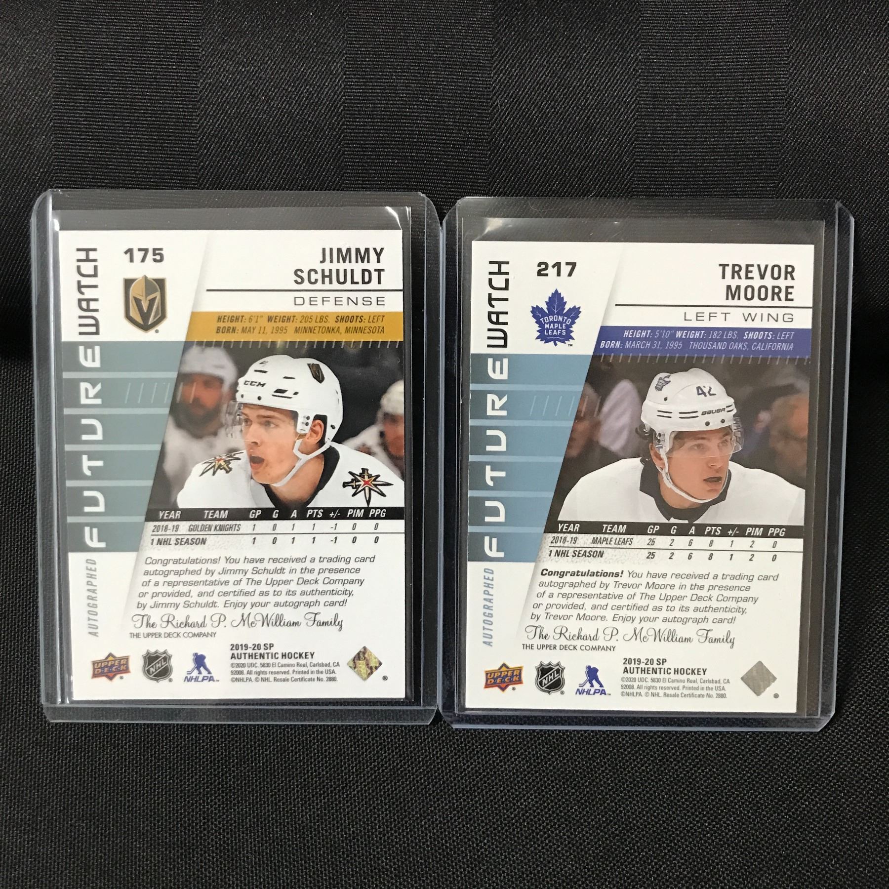 Lot 219 LOT OF 2 2019-20 SP AUTHENTIC HOCKEY SIGNED TRADING CARDS /999