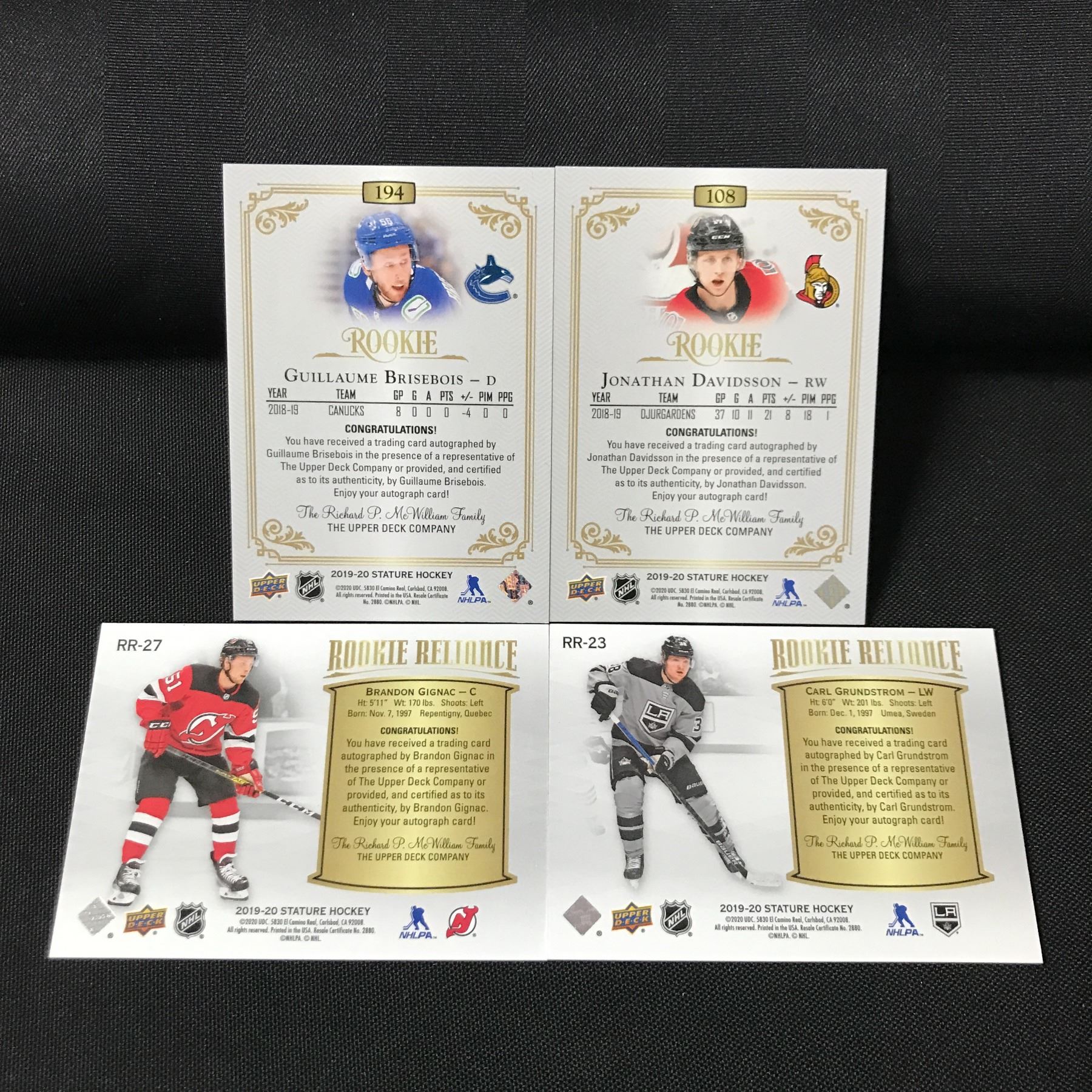 Lot 229 LOT OF 4 STATURE ROOKIE SIGNED HOCKEY TRADING CARDS