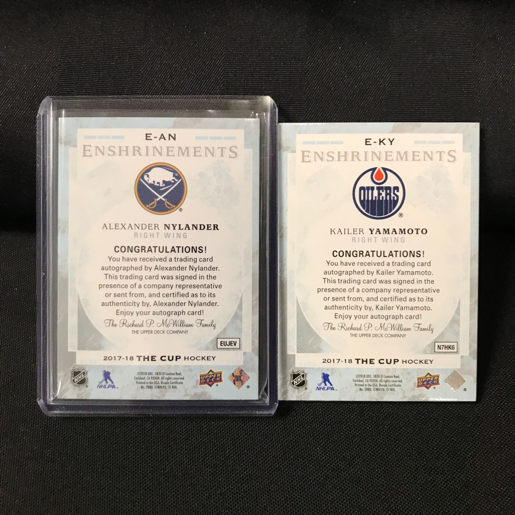 Lot 243 LOT OF 2 2017-28 UPPER DECK THE CUP HOCKEY SIGNED TRADING CARDS /99
