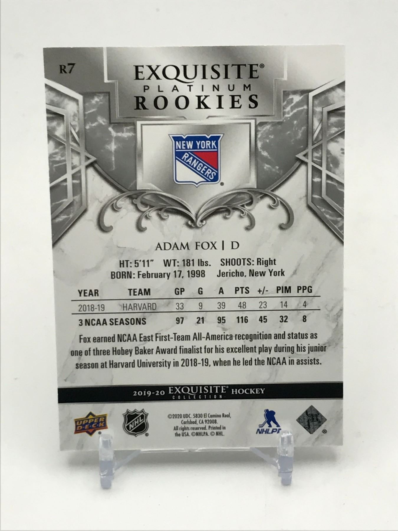 Lot 244 2019-20 UPPER DECK EXQUISITE COLLECTION ADAM FOX ROOKIE TRADING CARD 061/399