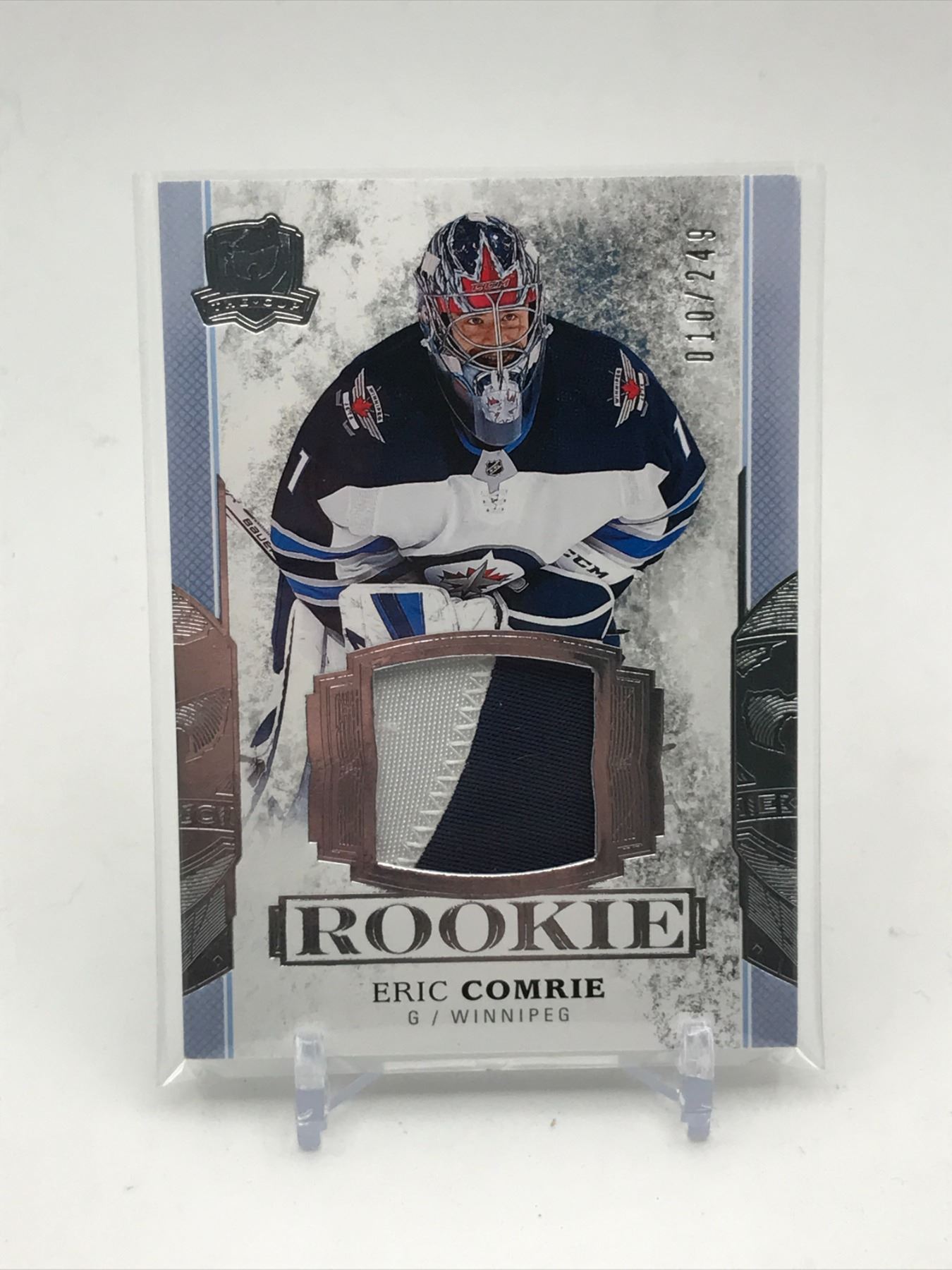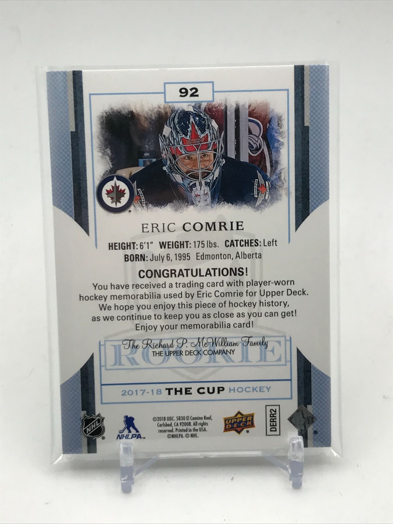 Lot 248 2017-18 UPPER DECK THE CUP HOCKEY ERIC COMRIE PATCH PATCH ROOKIE TRADING CARD 10/249