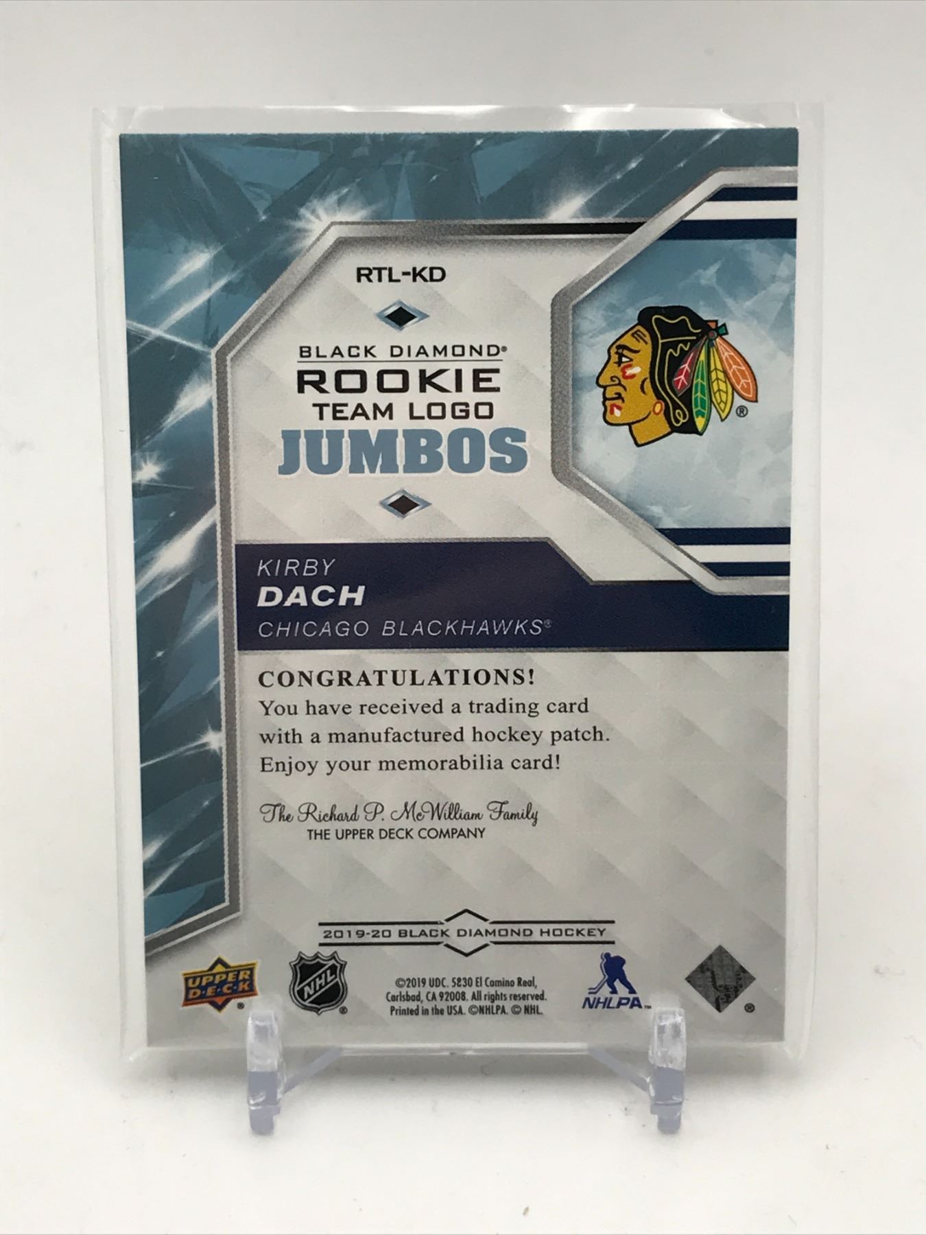 Lot 253 2019-20 UPPER DECK BLACK DIAMOND HOCKEY ROOKIE JUMBOS KIRBY DACH TRADING CARD