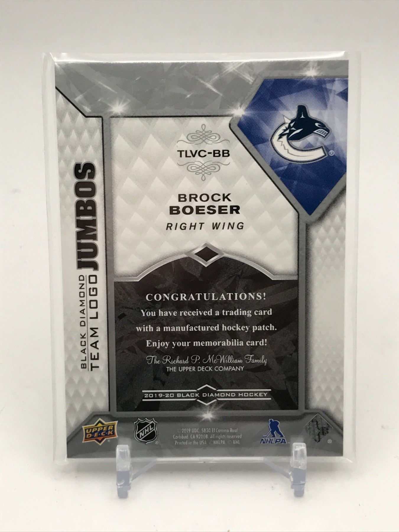 Lot 254 2019-20 UPPER DECK BLACK DIAMOND HOCKEY BROCK BOESER TRADING CARD