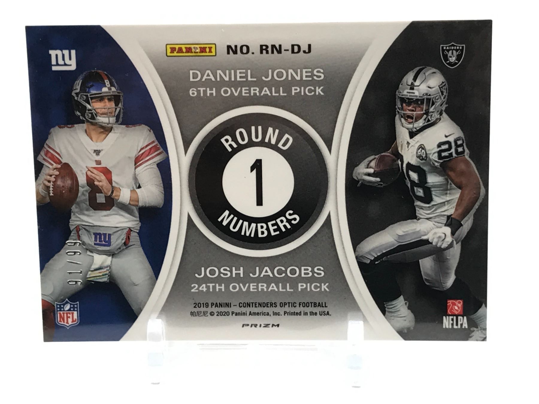 Lot 283 2019 PANINI CONTENDERS OPTIC FOOTBALL DANIEL JONES / JOSH JACOBS TRADING CARD