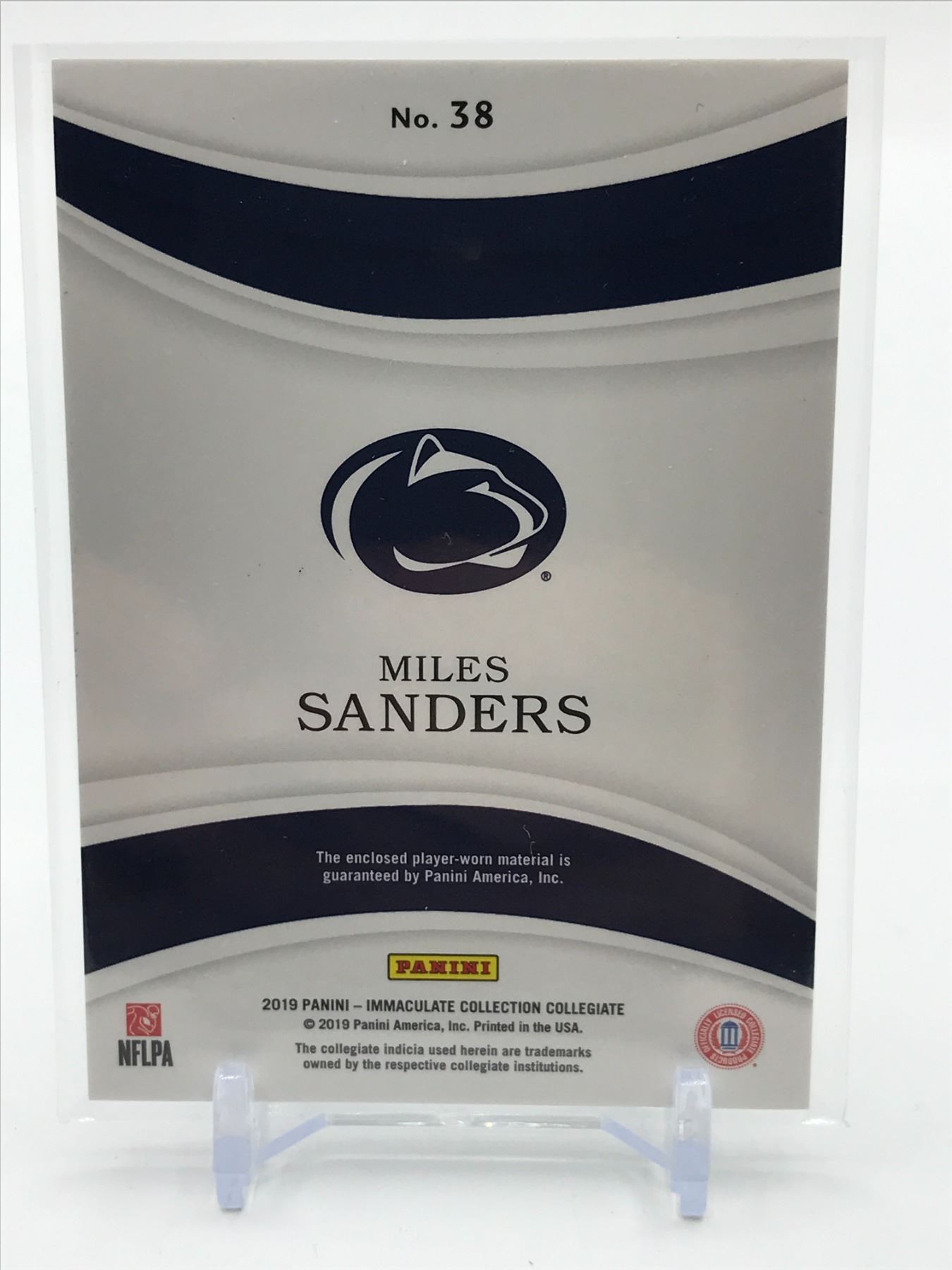 Lot 286 2019 PANINI IMMACULATE COLLECTION COLLEGIATE MILES SANDERS PATCH CARD 39/99