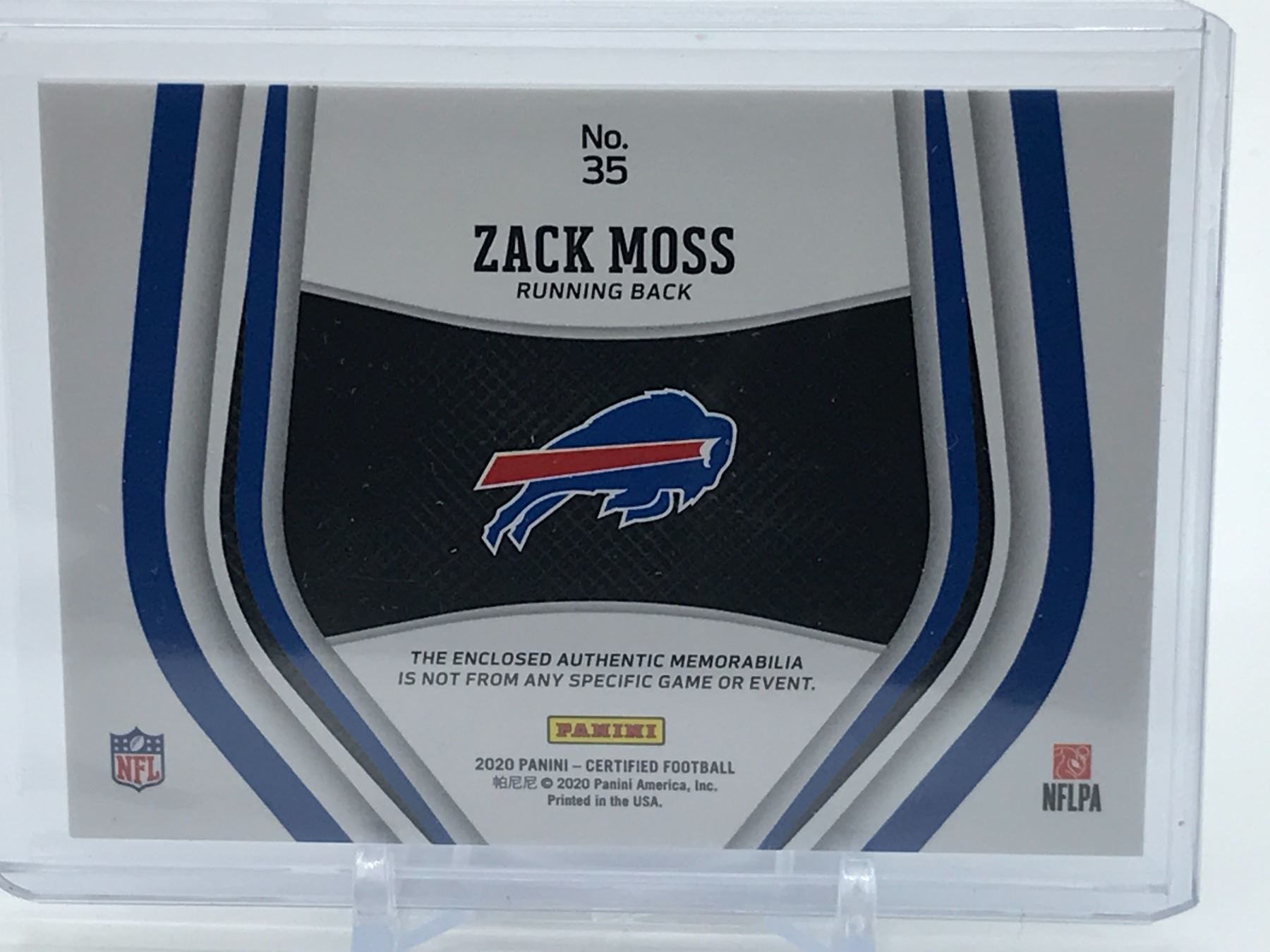 Lot 296 2020 PANINI CERTIFIED FOOTBALL ZACK MOSS PATCH ROOKIE TRADING CARD