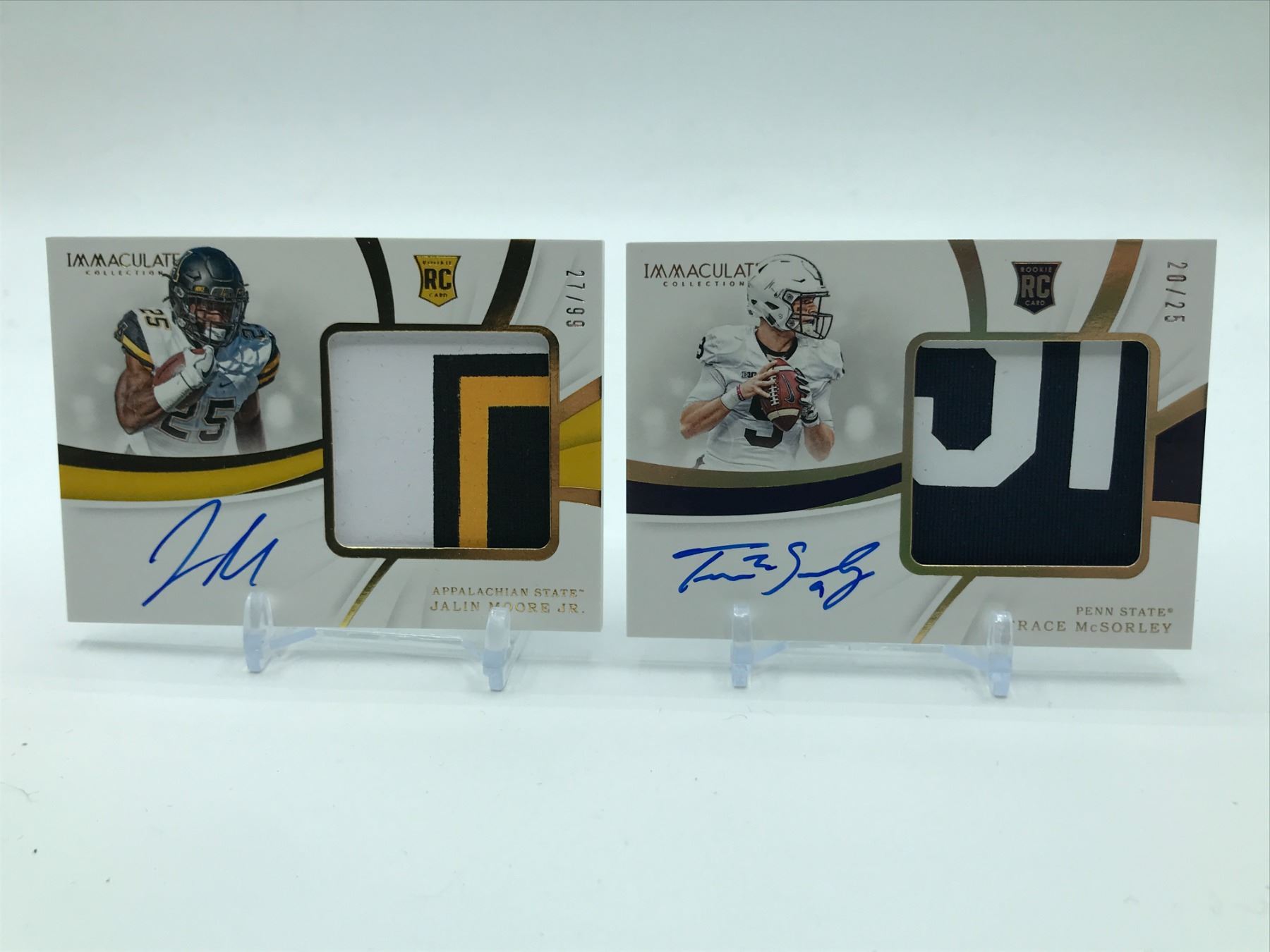 Lot 308 LOT OF 2 2019 PANINI IMMACULATE COLLECTION COLLEGIATE SIGNED PATCH ROOKIE CARDS - 20/25 & 27/99