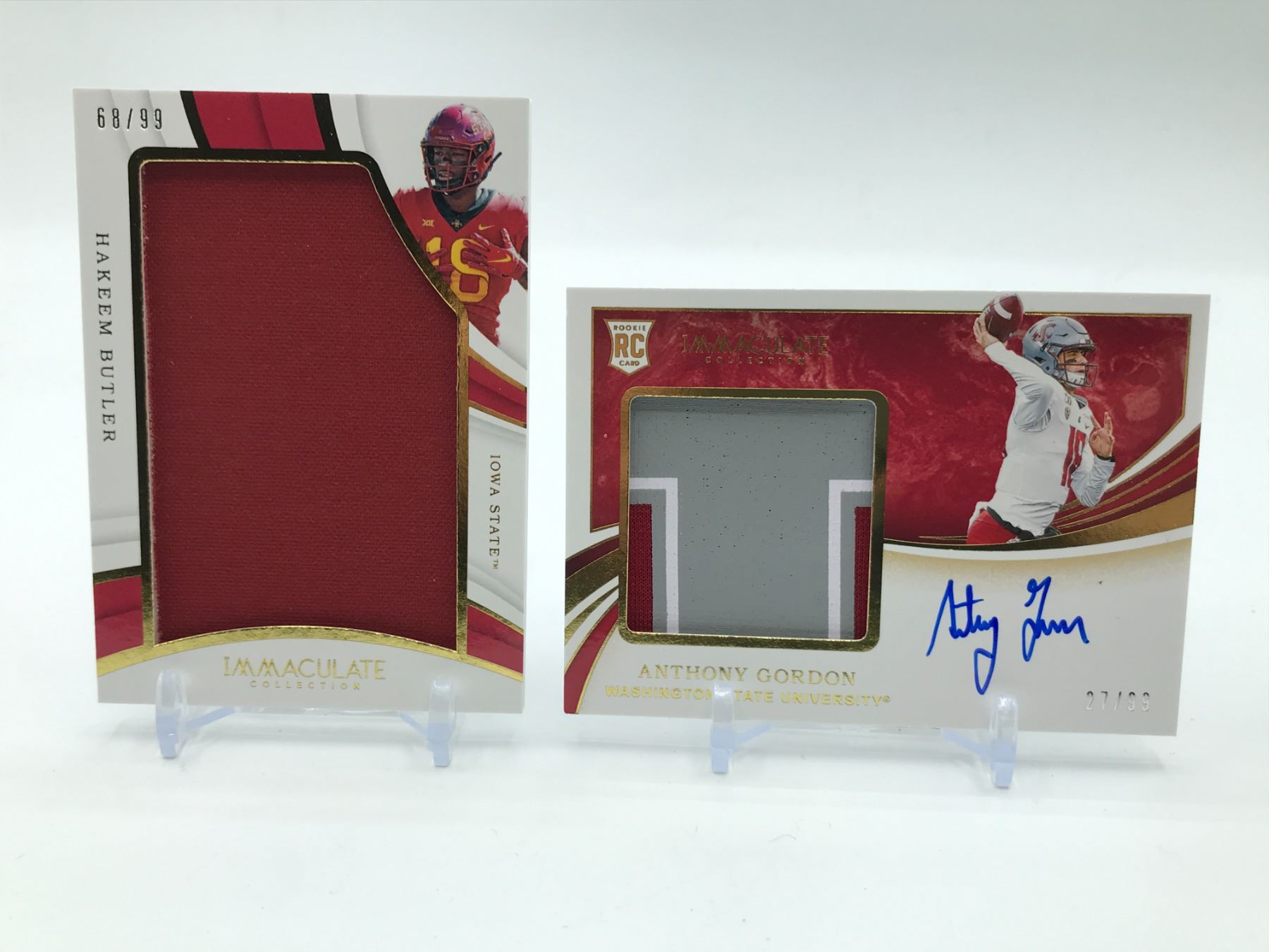 Lot 314 LOT OF 2 2019 PANINI IMMACULATE COLLECTION COLLEGIATE PATCH TRADING CARDS INCLUDING 1 SIGNED ROOKIE