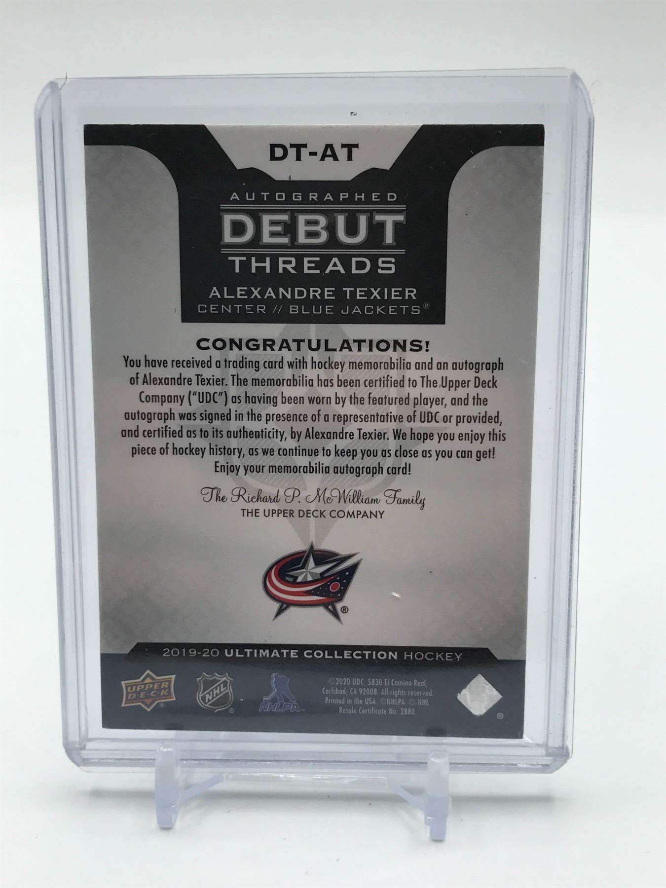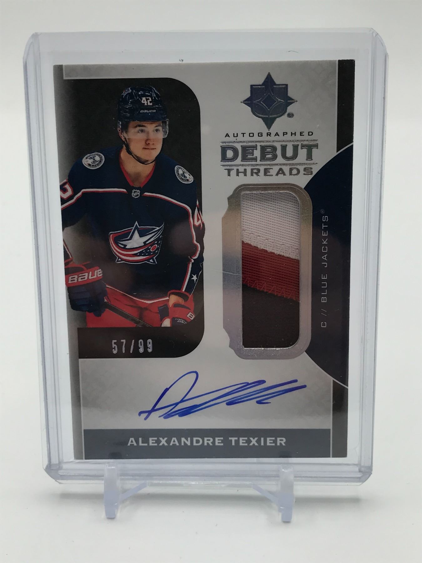 Lot 332 2019-20 UPPER DECK ULTIMATE COLLECTION HOCKEY ALEXANDRE TEXIER SIGNED PATCH TRADING CARD 57/99