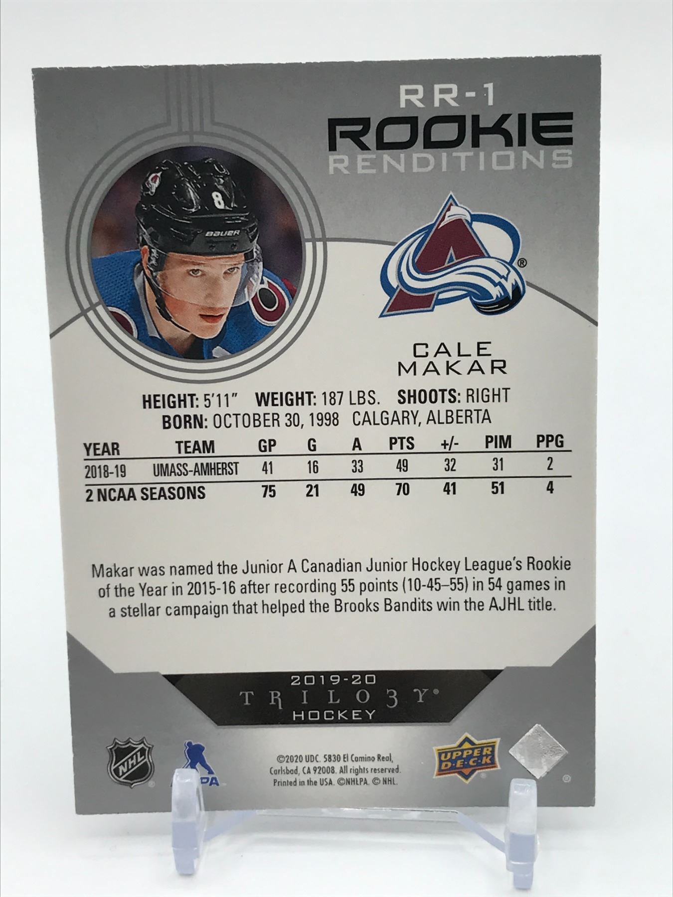 Lot 344 2019-20 UPPER DECK TRILOGY HOCKEY ROOKIE RENDITIONS CALE MAKAR TRADING CARD