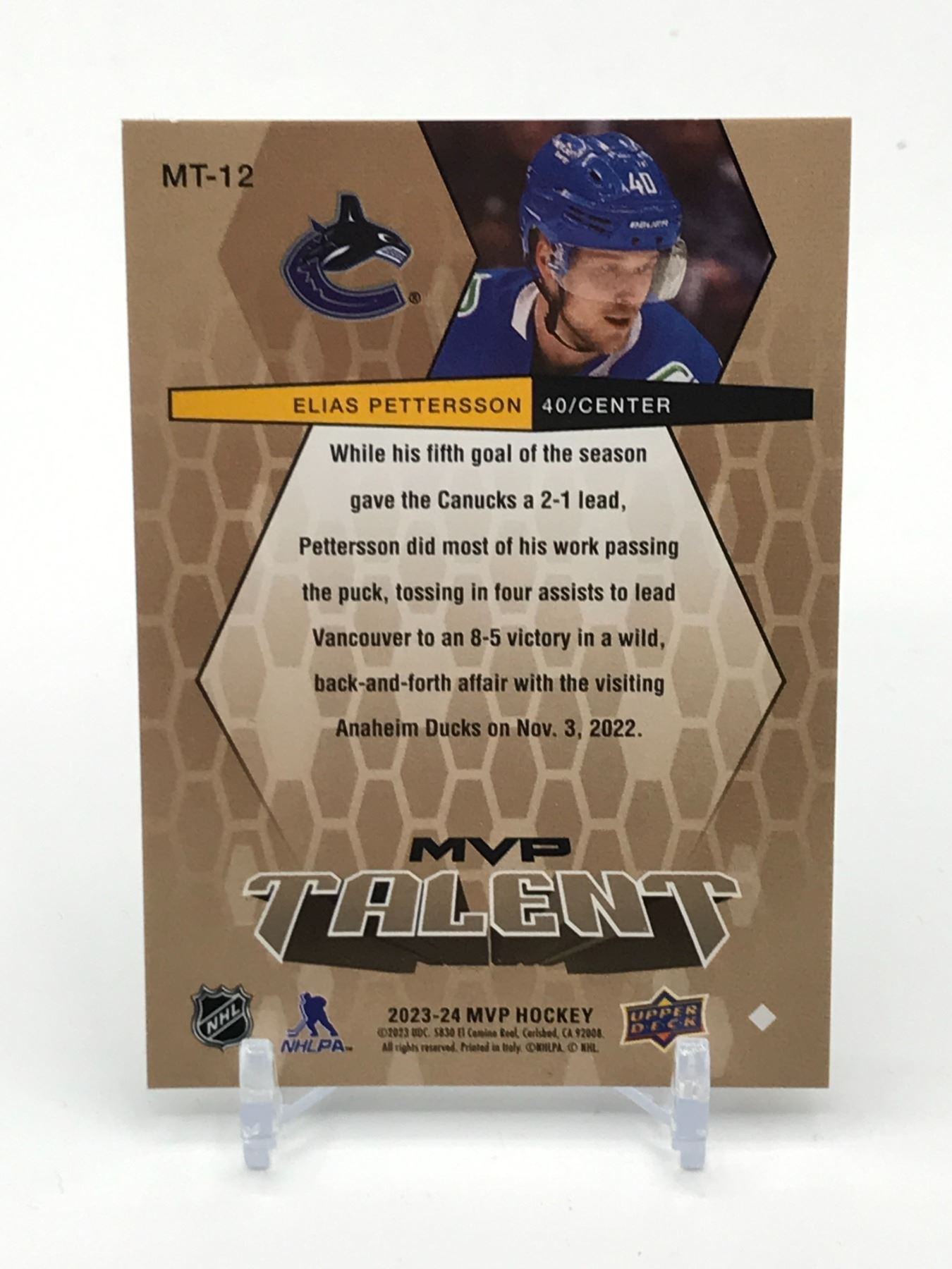 Lot 463 ELIAS PETTERSSON SIGNED HOCKEY TRADING CARD