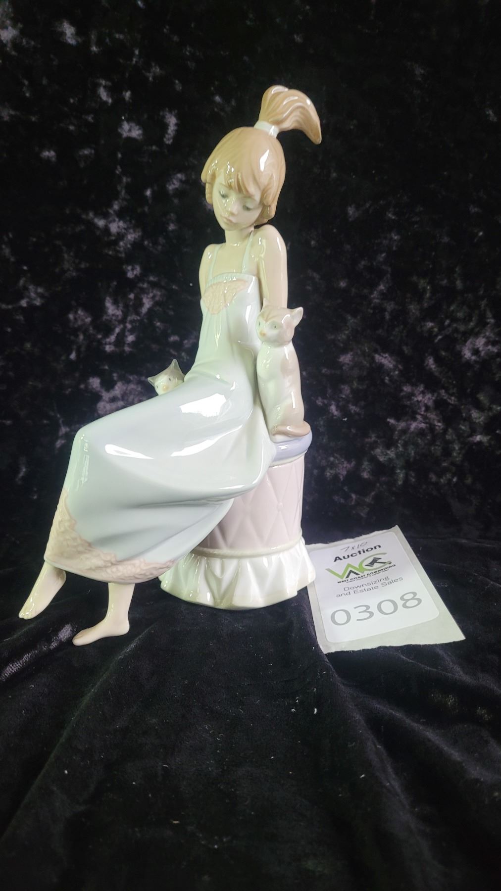 Lot 308 Lladro Girl w Cats or Bedtime. SC 1 Cat A