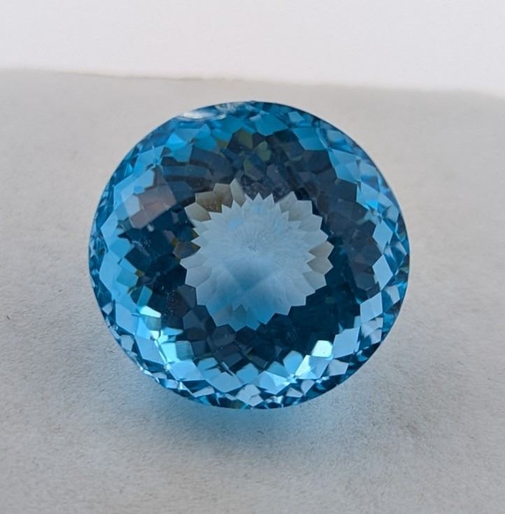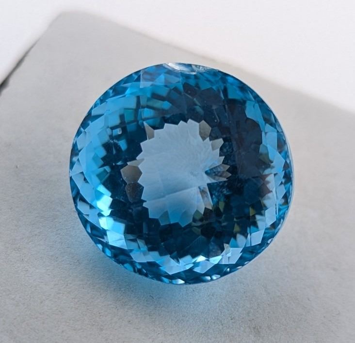 Royal Blue Topaz. One round mixed cut loose natural Royal Blue topaz. Carat weight: 46.00ct. Colour: Royal Blue. Cut: Good.