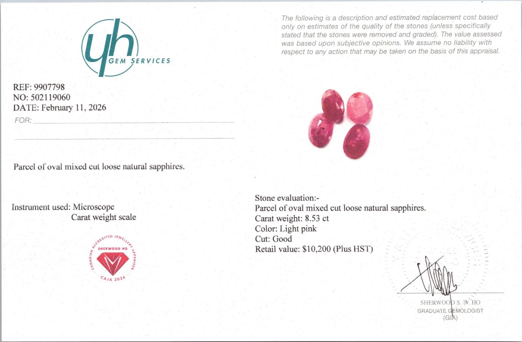 Lot 333 8.53 ct Certified Pink Sapphire gemstone Parcel ($10,200 Appraisal)