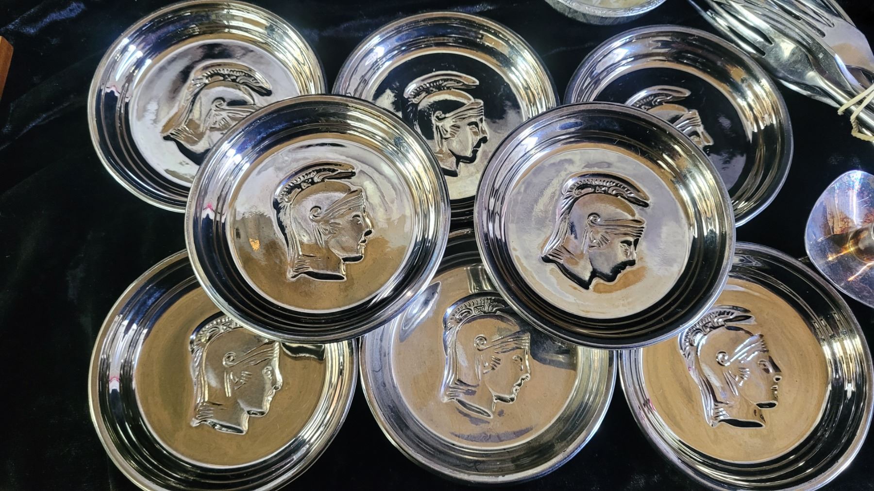 Assortment of silver plate, stainless and other metal decorative items. Pickup at 9 am