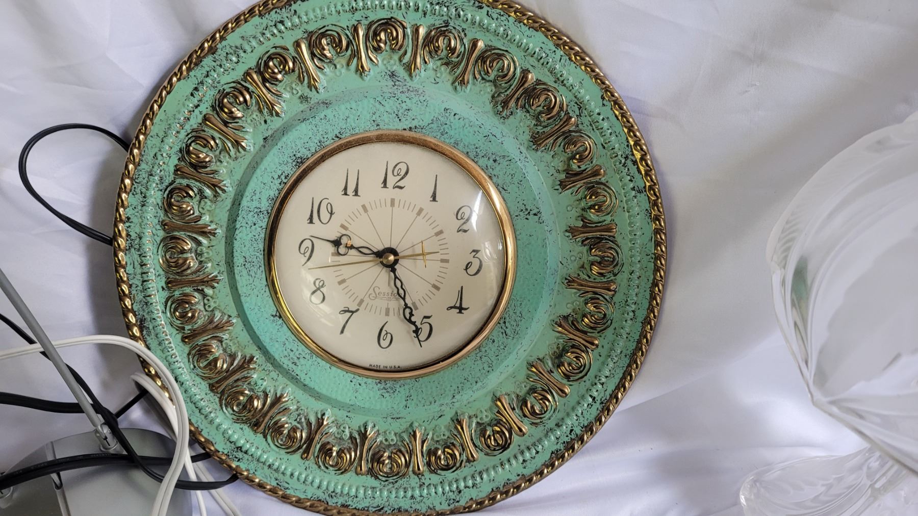 Vintage electric wall clock by Session. Crystal table lamp 12". Office lamp. Pickup at 9 am