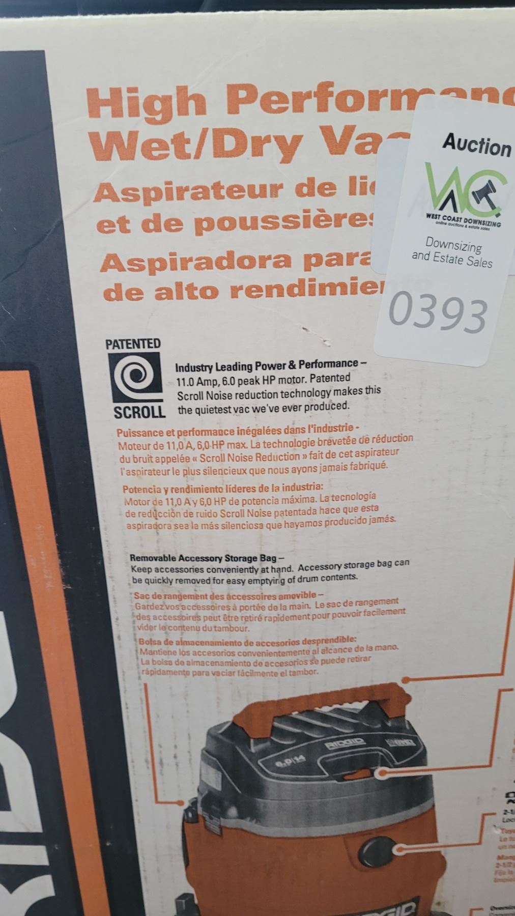 Lot 393 Rigid Wet/Dry Vacuum SC3 Cat B