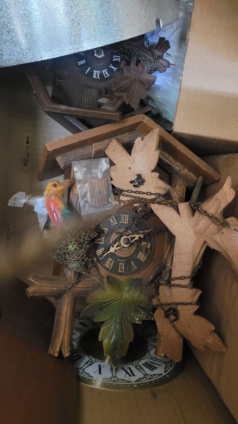 Large box of clocks for parts. Pickup at 10 am