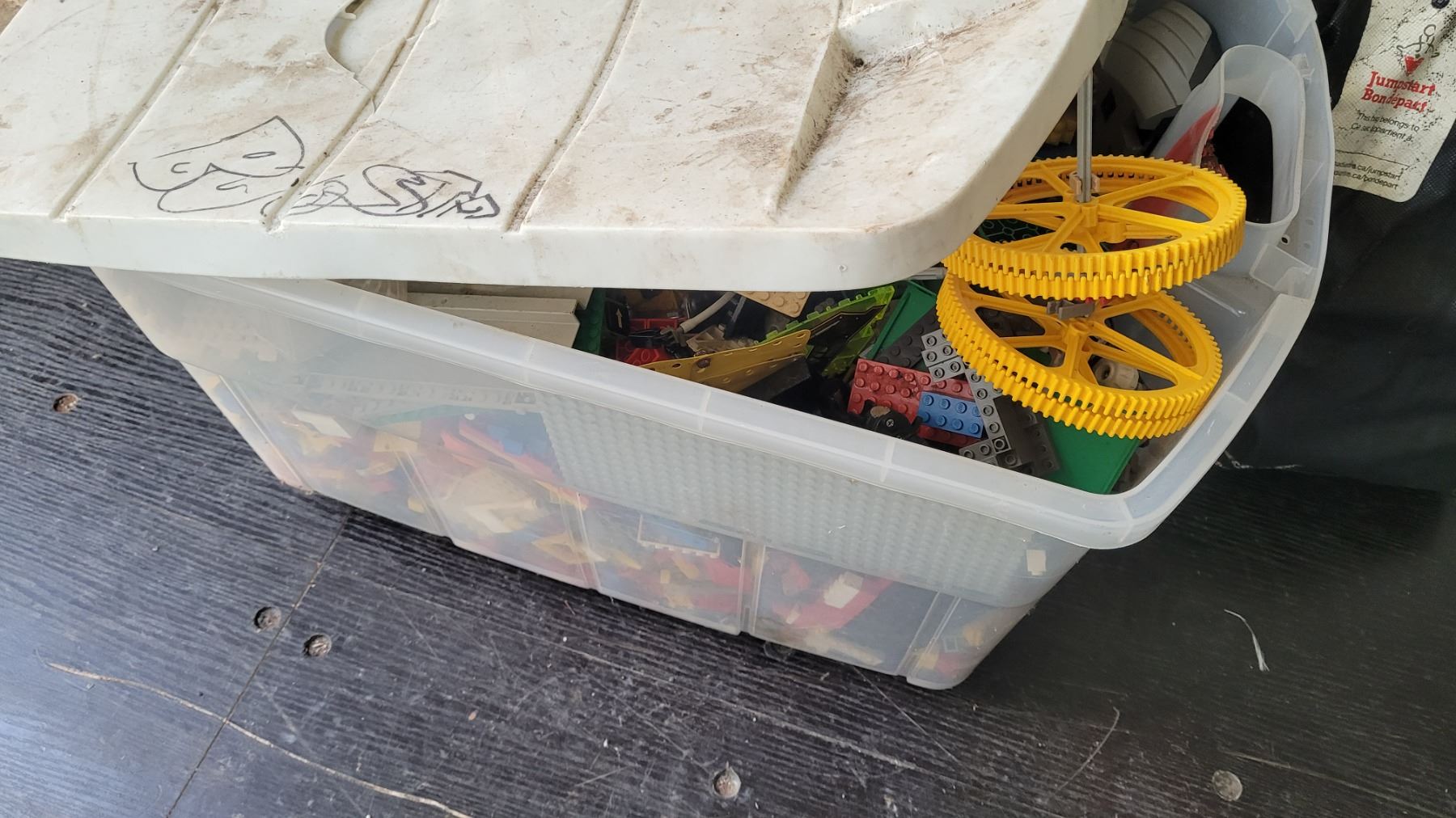 Large tote of lego pieces. Pickup at 10 am