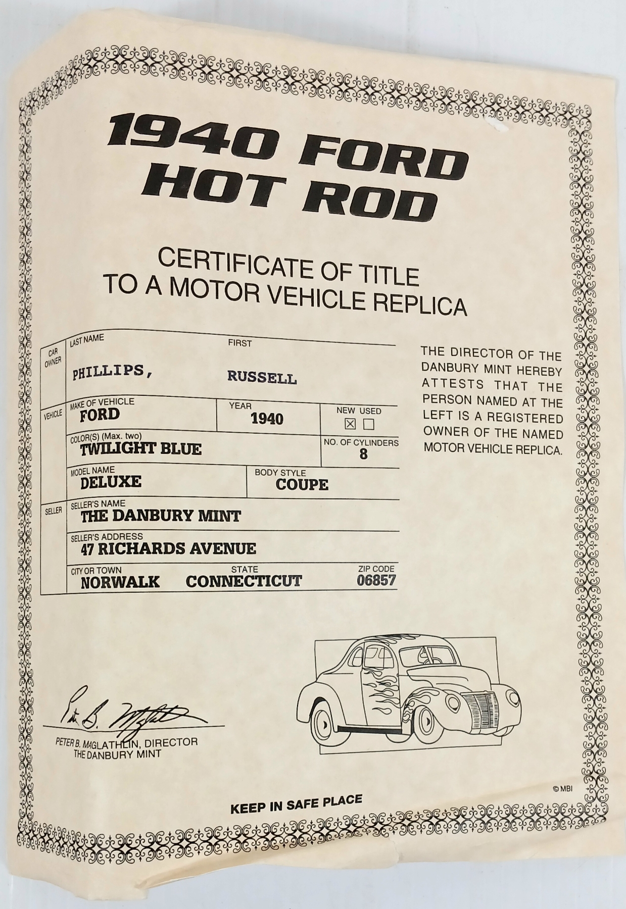 Lot 1301 DANBURY MINT DIECAST 1940 FORD HOT ROD MODEL