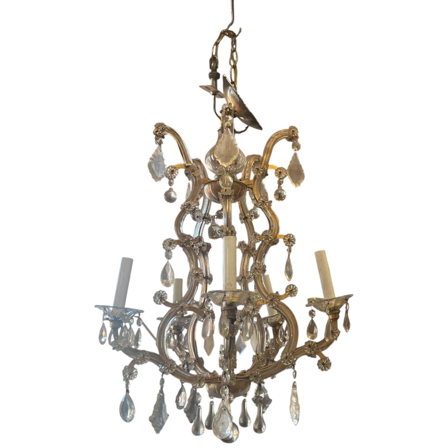 Vintage Chandelier with Cut Glass Drops (26" tall x 24" diameter)