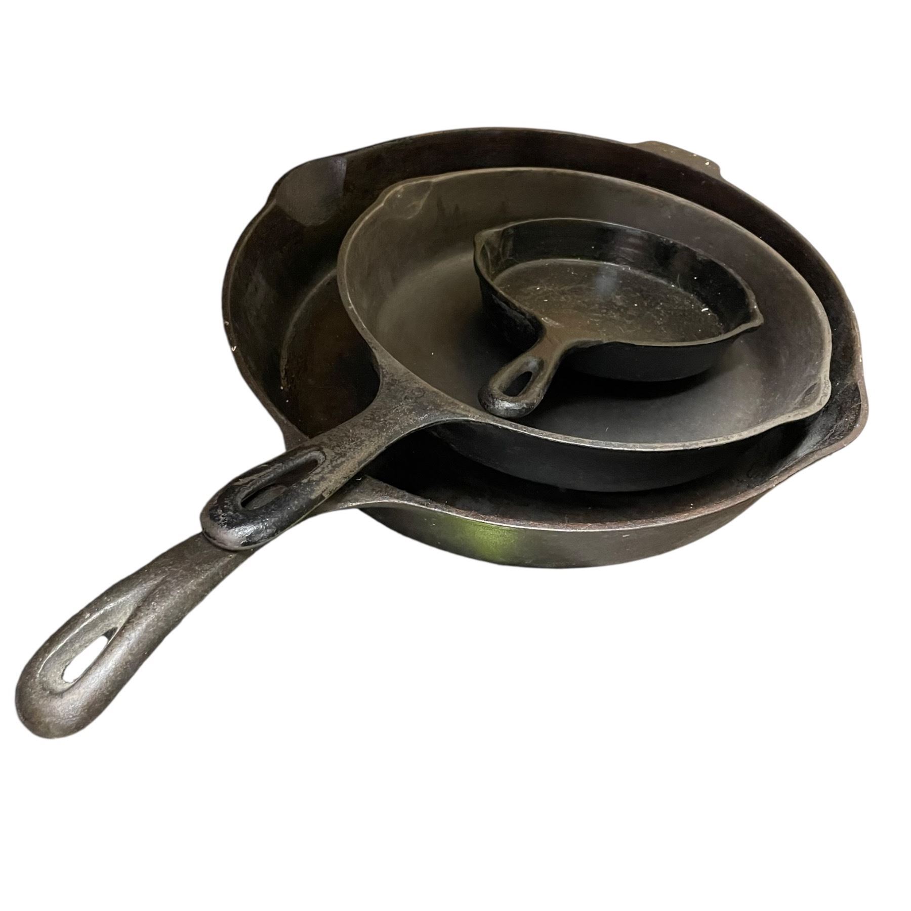 3 Cast Iron Pans: Pair of Wagner Ware 13 3/8" & 10.5" and One Unmarked