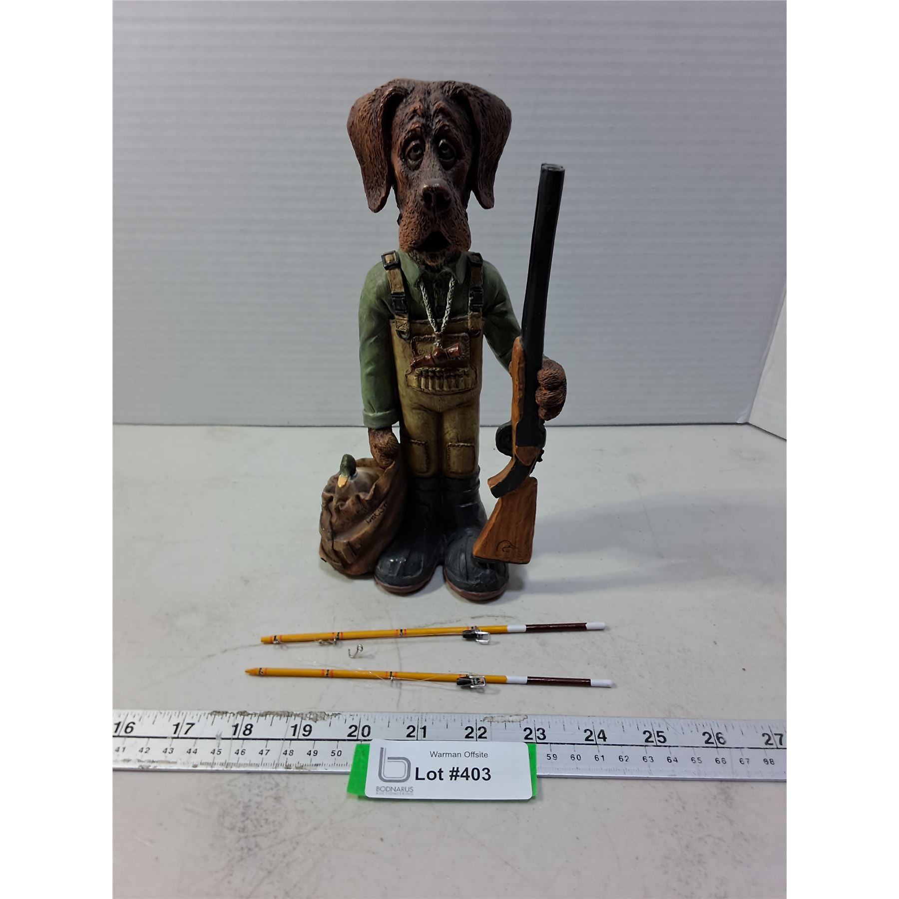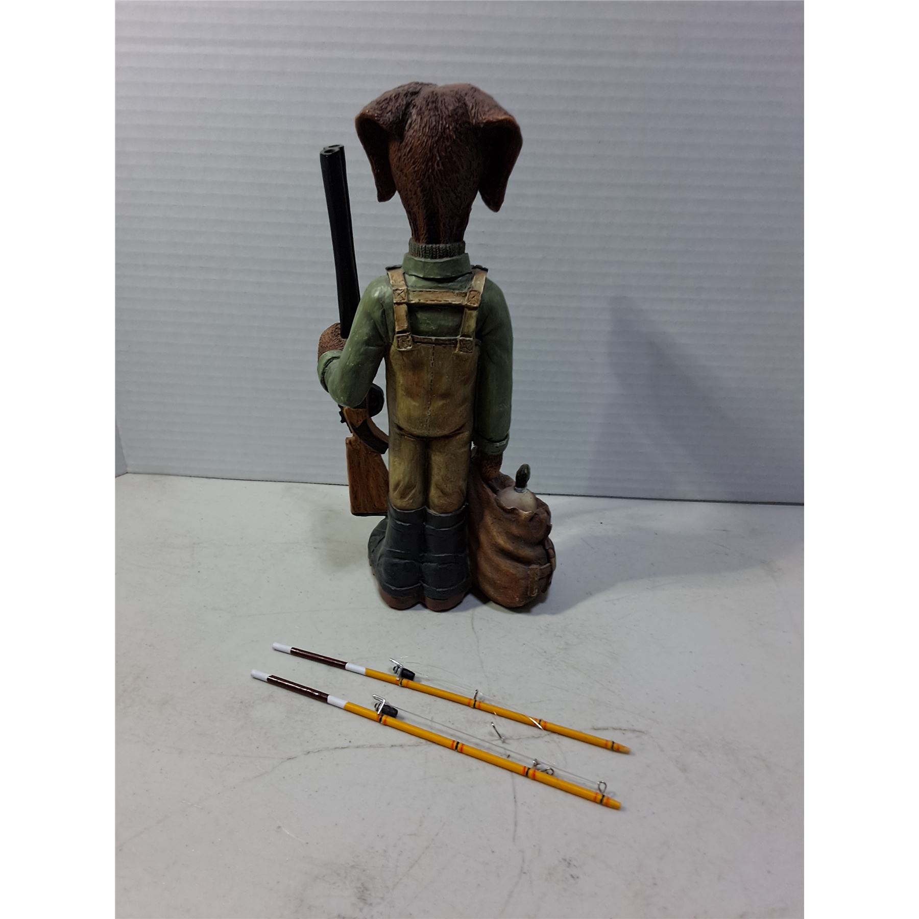 Lot 403 Ducks Unlimited "Dog Hunter" Resin Ornament, Mini Fishing Rods