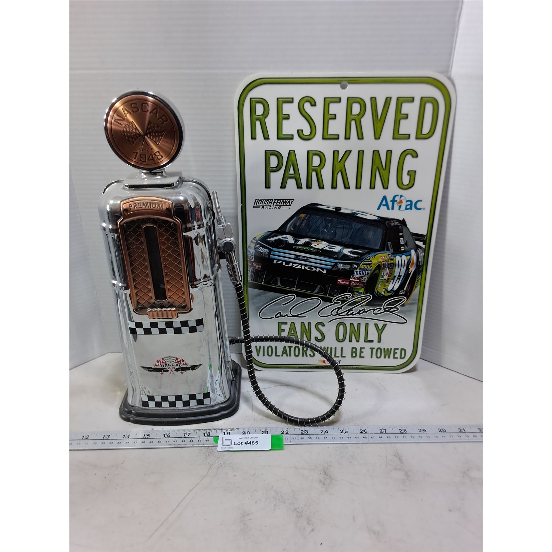 Lot 485 Retro Nascar Gas Pump Memorabilia & "Reserved Parking" Wall Decor - PICK UP