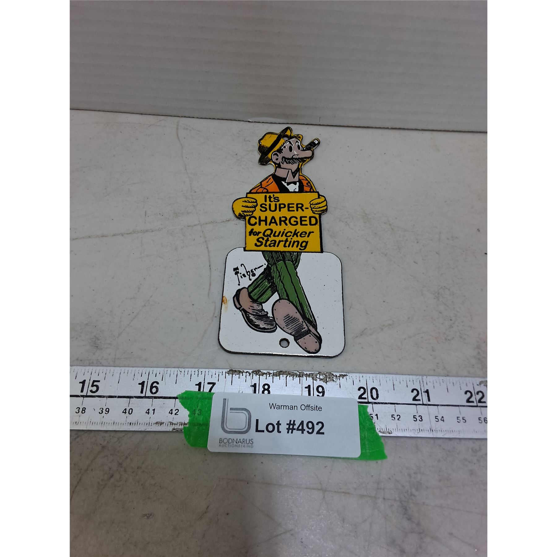 Lot 492 Vintage Metal Shell Gasoline Advertising Sign Featuring "Toonerville Trolley" Character Jeff