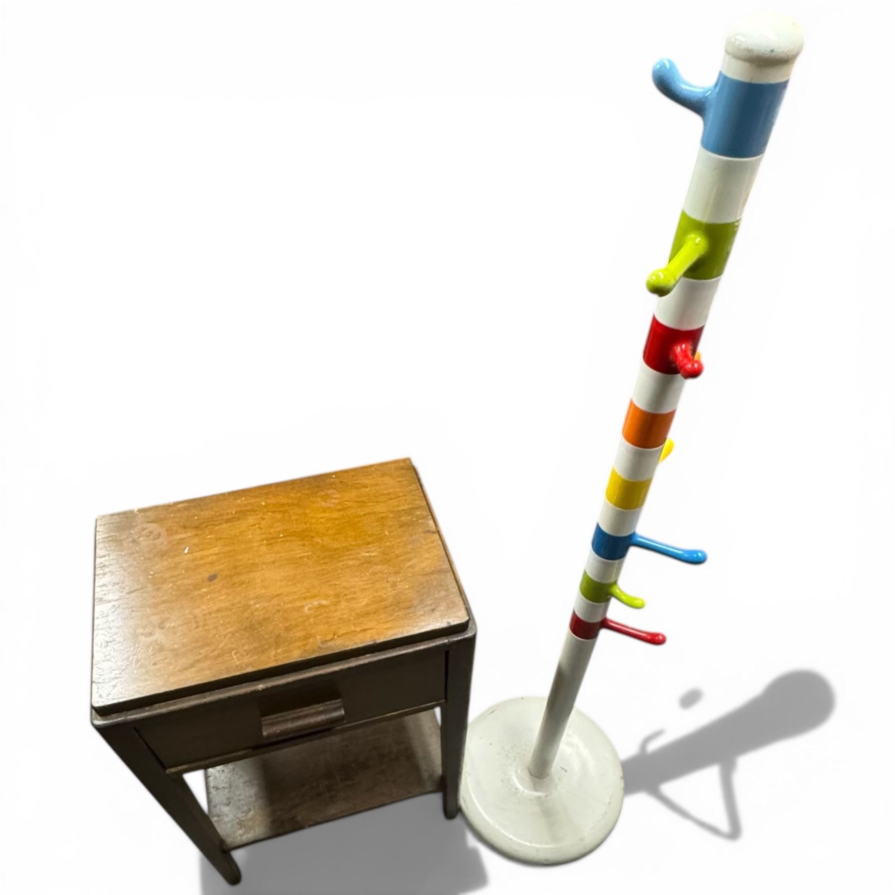 Lot 1002 Vintage Side Table 18.5x12.5x28.5" and Childrens Coat Stand 50" Tall