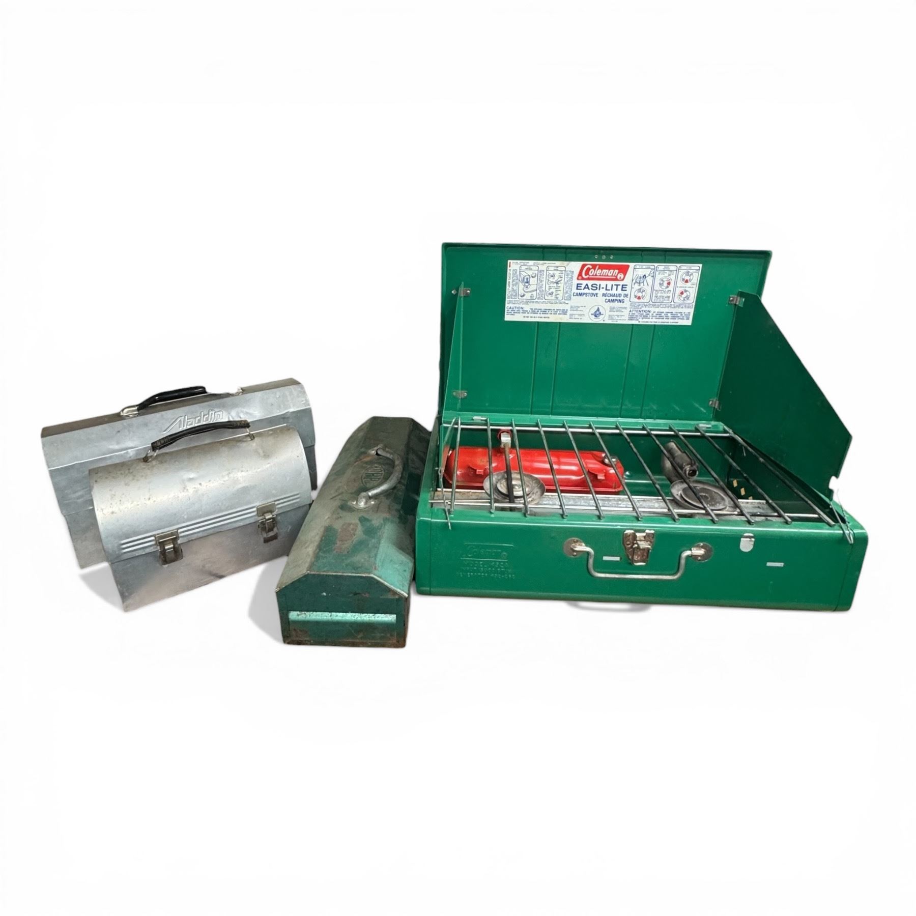 Lot 1003 Coleman Easi -Lite Camp Stove, Aluminum Lunch Boxes and Tool Box