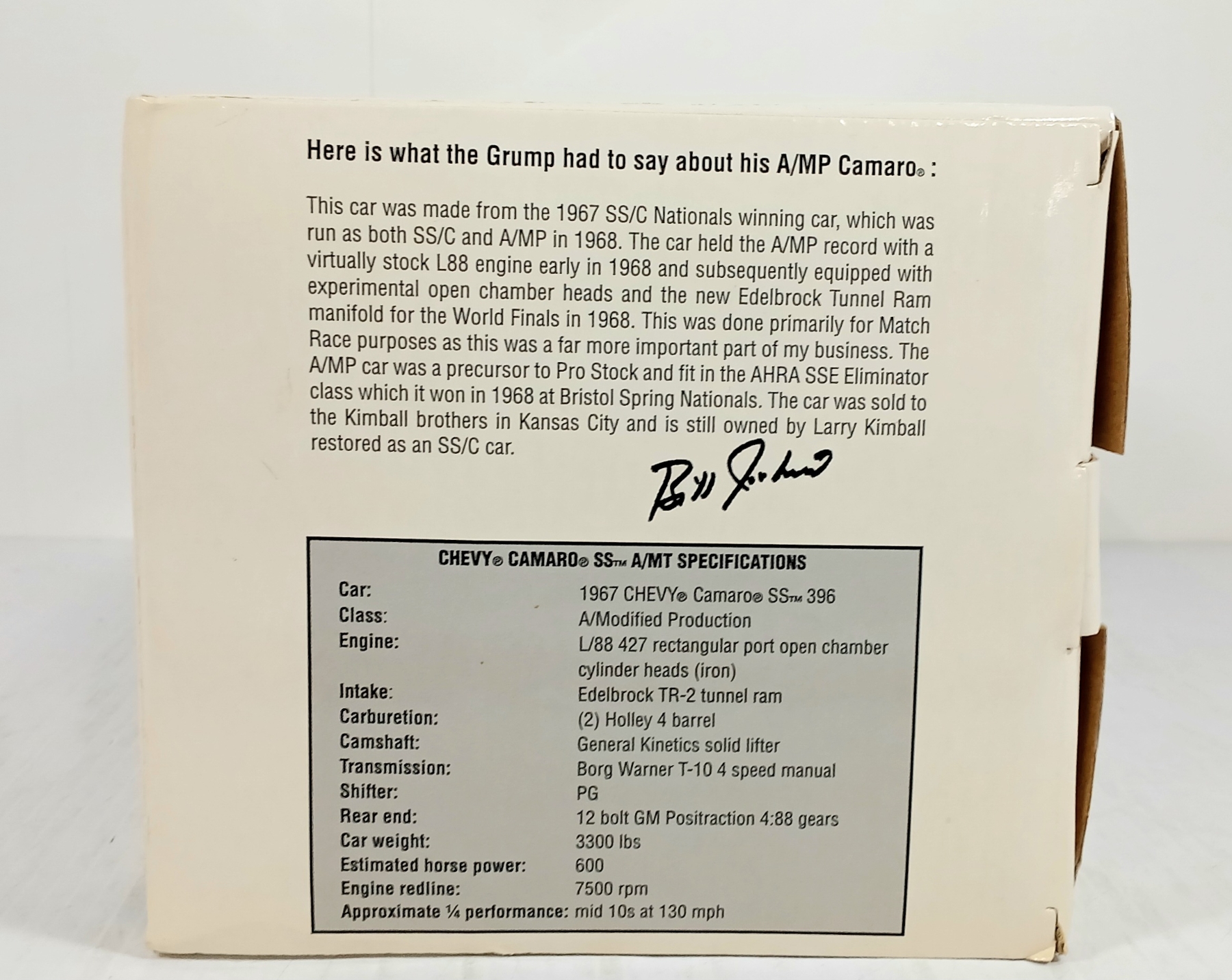 Lot 1314 LEARNING CURVE DIECAST BILL JENKINS 1967 CHEVY CAMARO SS A/MP MODEL - GRUMPY'S TOY III - SEALED