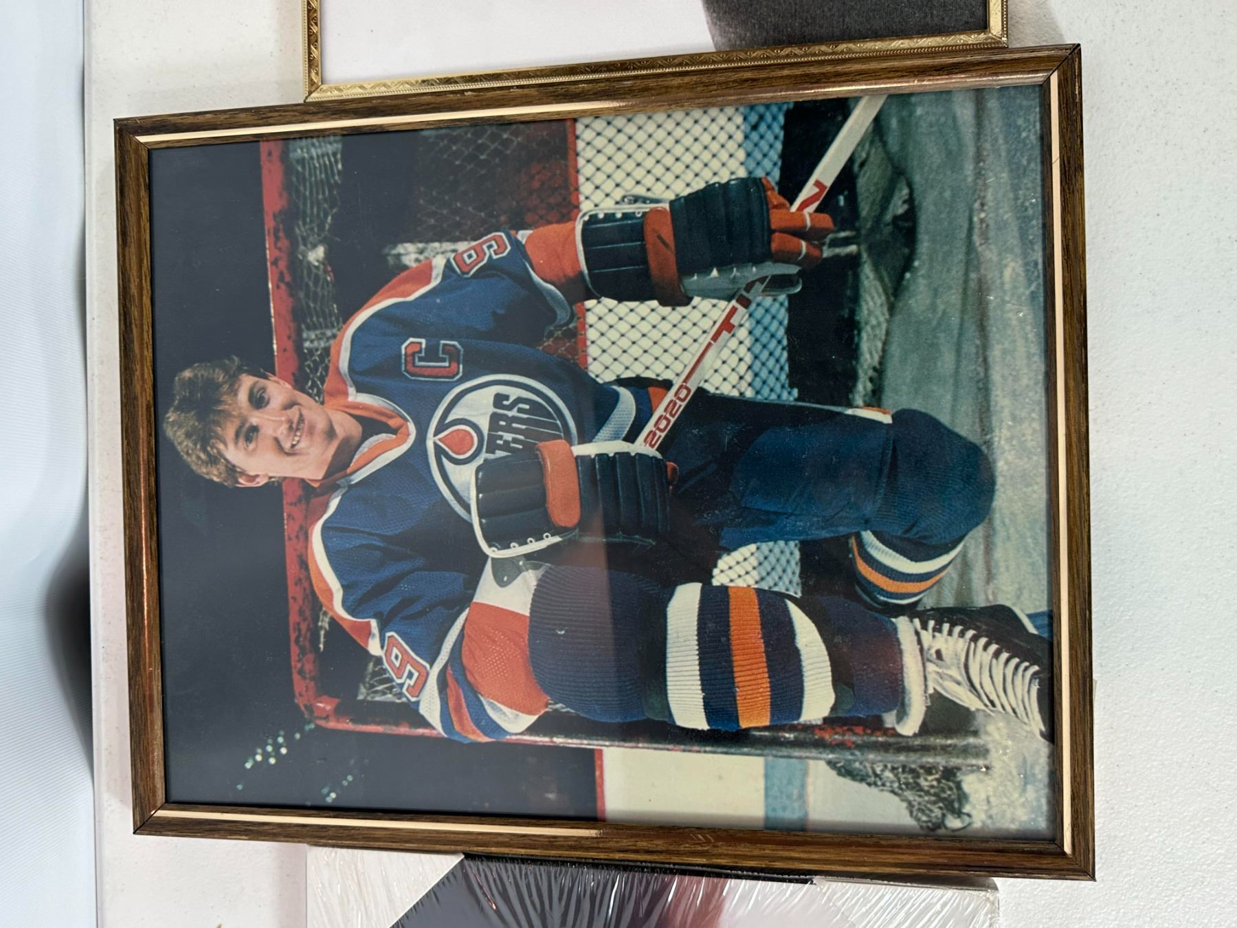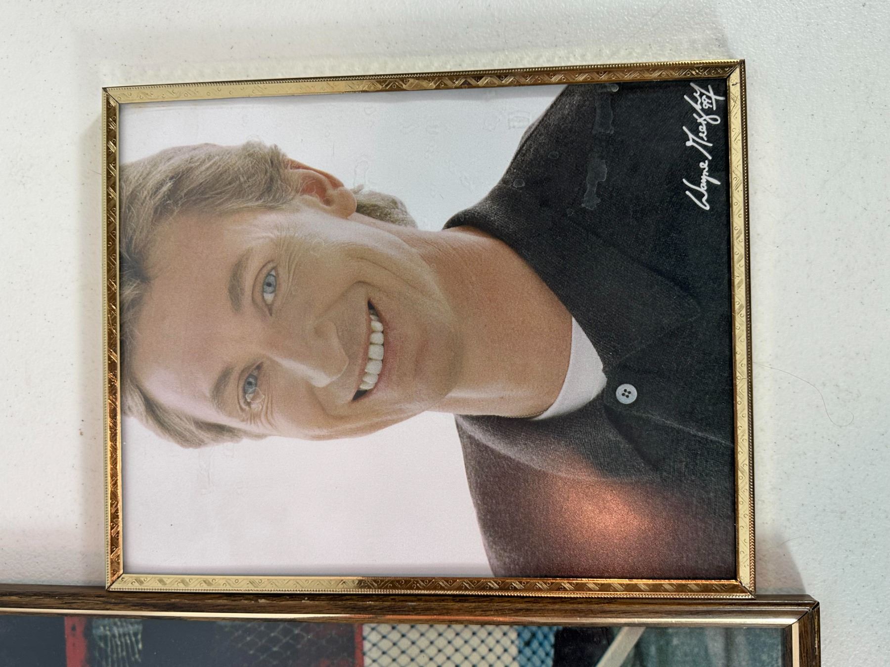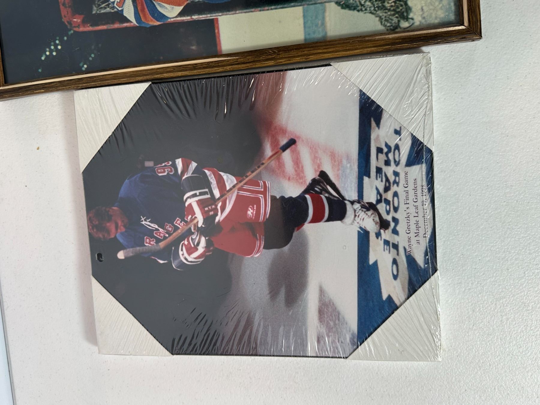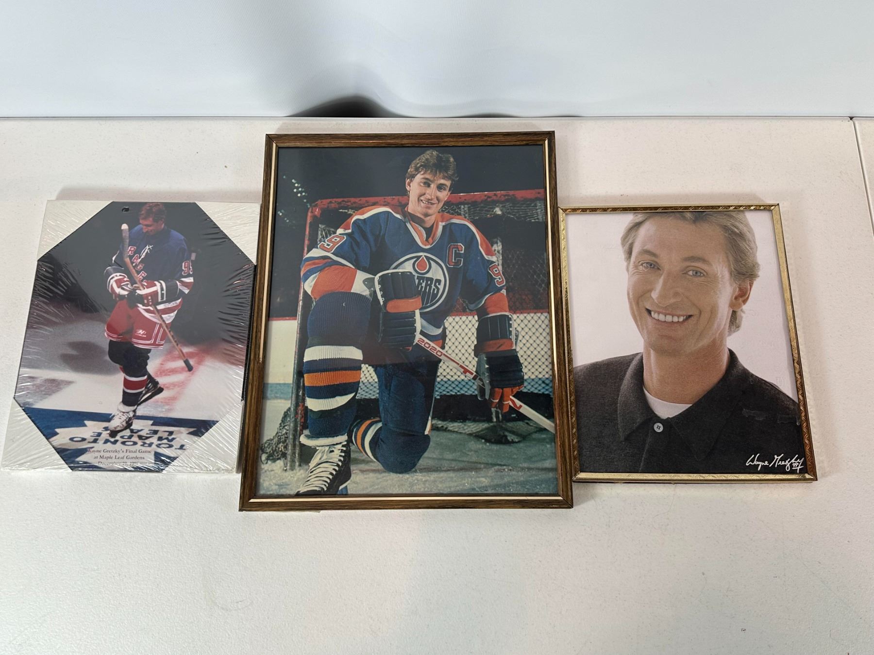 Collection of three vintage Wayne Gretzky photographs, including framed and mounted pieces featuring the hockey legend during his career. Includes action and portrait-style images, ideal for collectors of NHL memorabilia and fans of 'The Great One'.