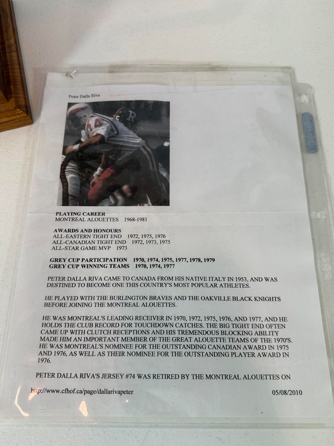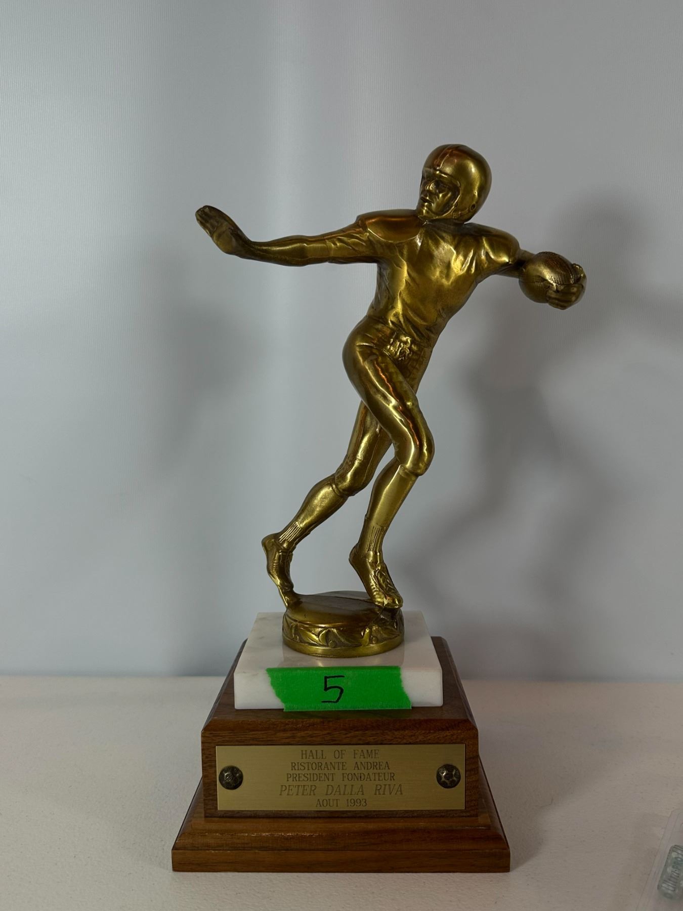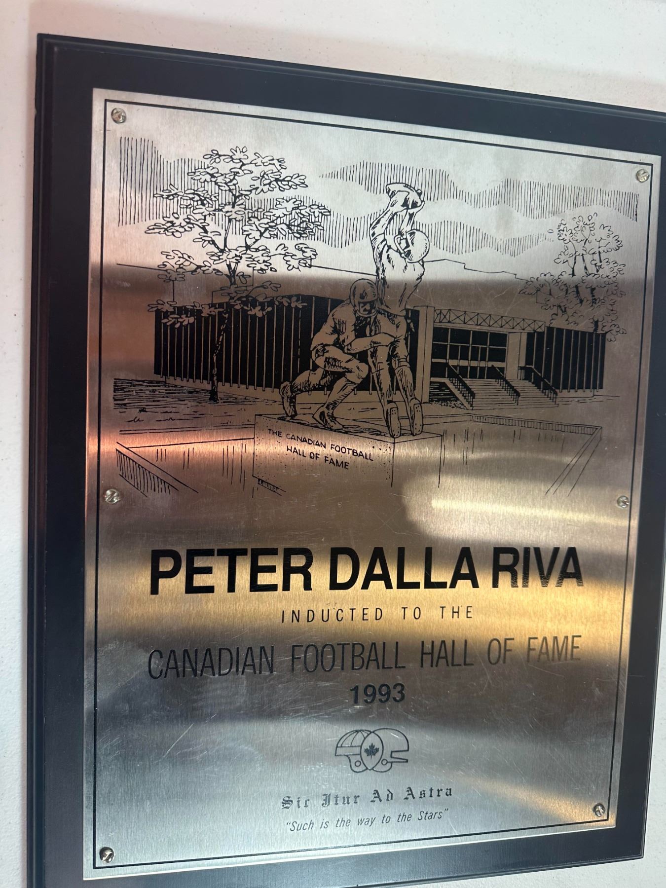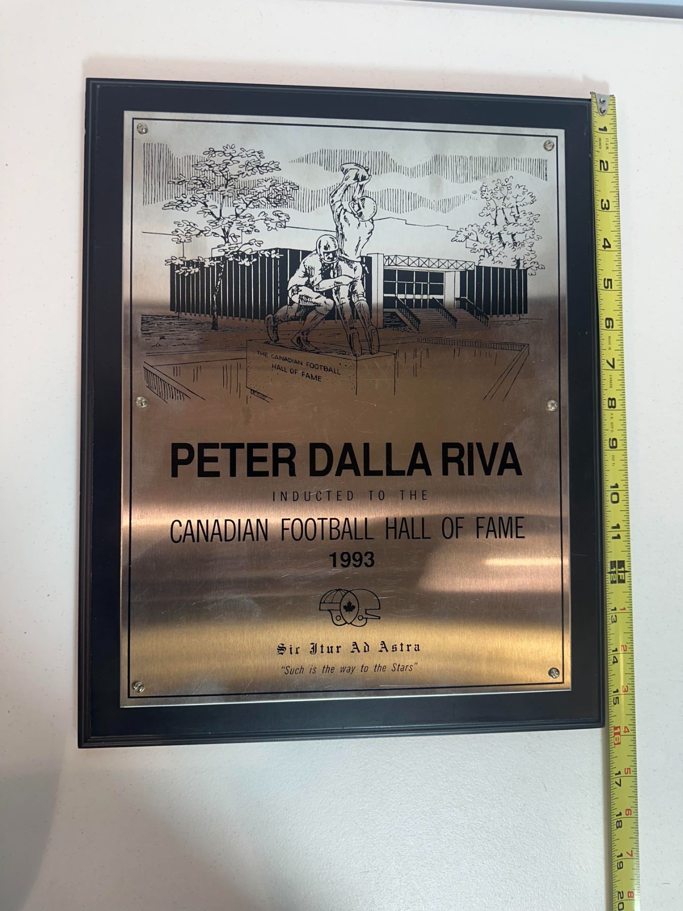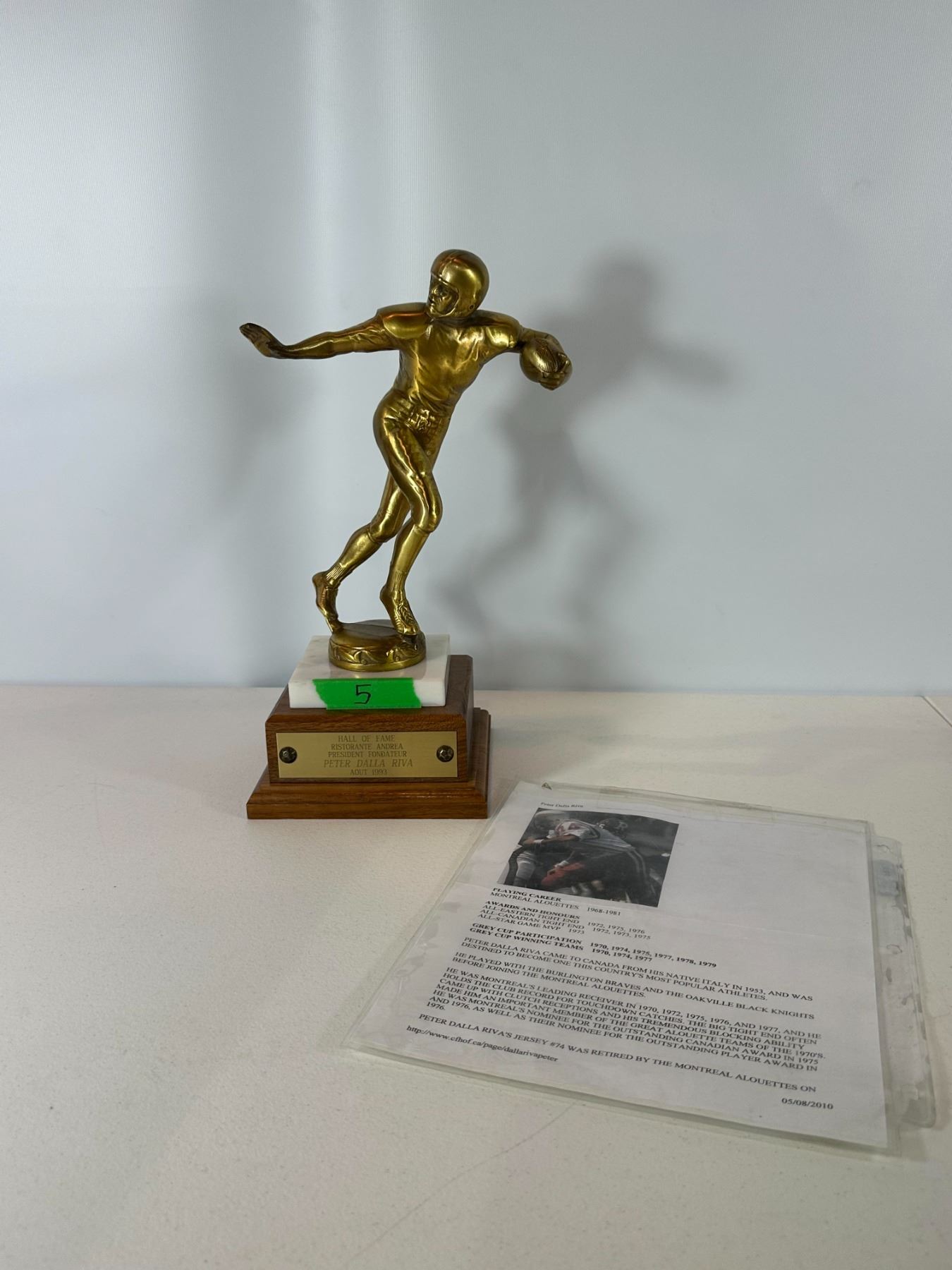 Lot 5 1993 CFL Hall of Fame Inductee Trophy – Peter Dalla Riva (Montreal) 1 of 1