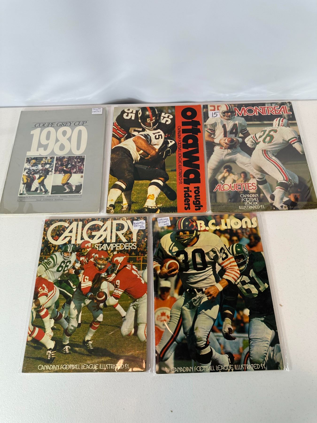 Lot 54 5 x 1970's–1980 CFL Programs incl. 1980 Grey Cup