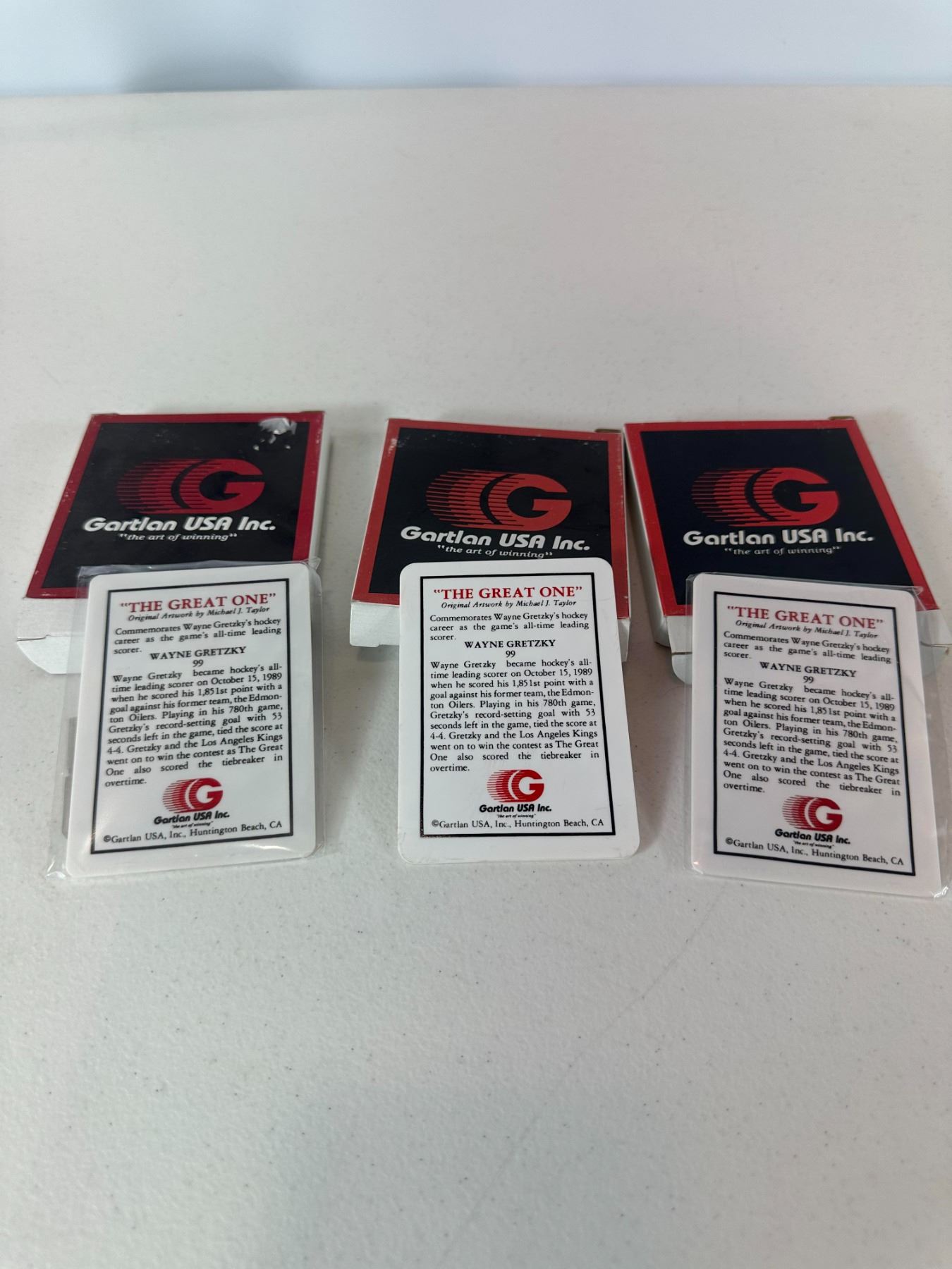 Lot 62 Wayne Gretzky Ceramic Hockey Cards (3 pcs, Gartlan USA)