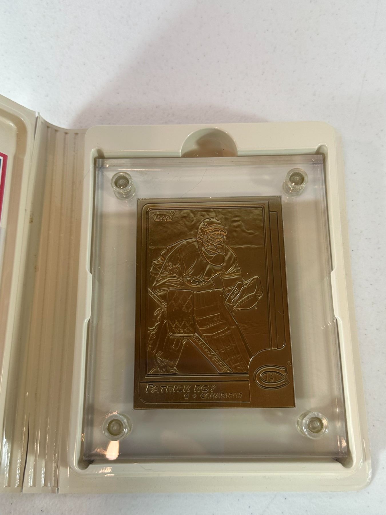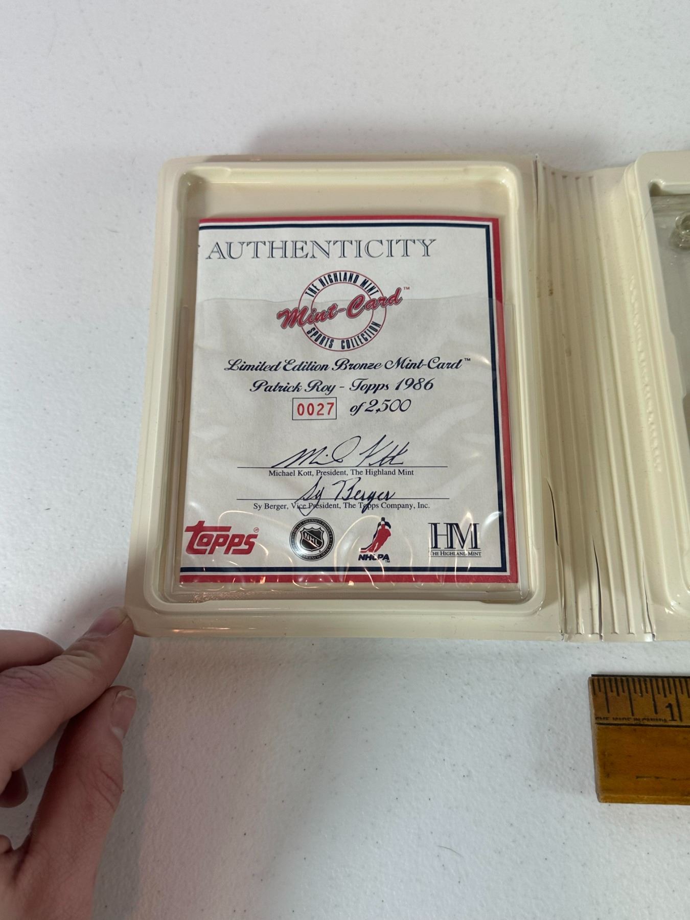 Limited edition Highland Mint bronze card featuring Patrick Roy (Montreal Canadiens). Individually numbered #27 of 2,500 produced. Comes in original display case/holder. Nice collectible piece for Roy or Canadiens fans.