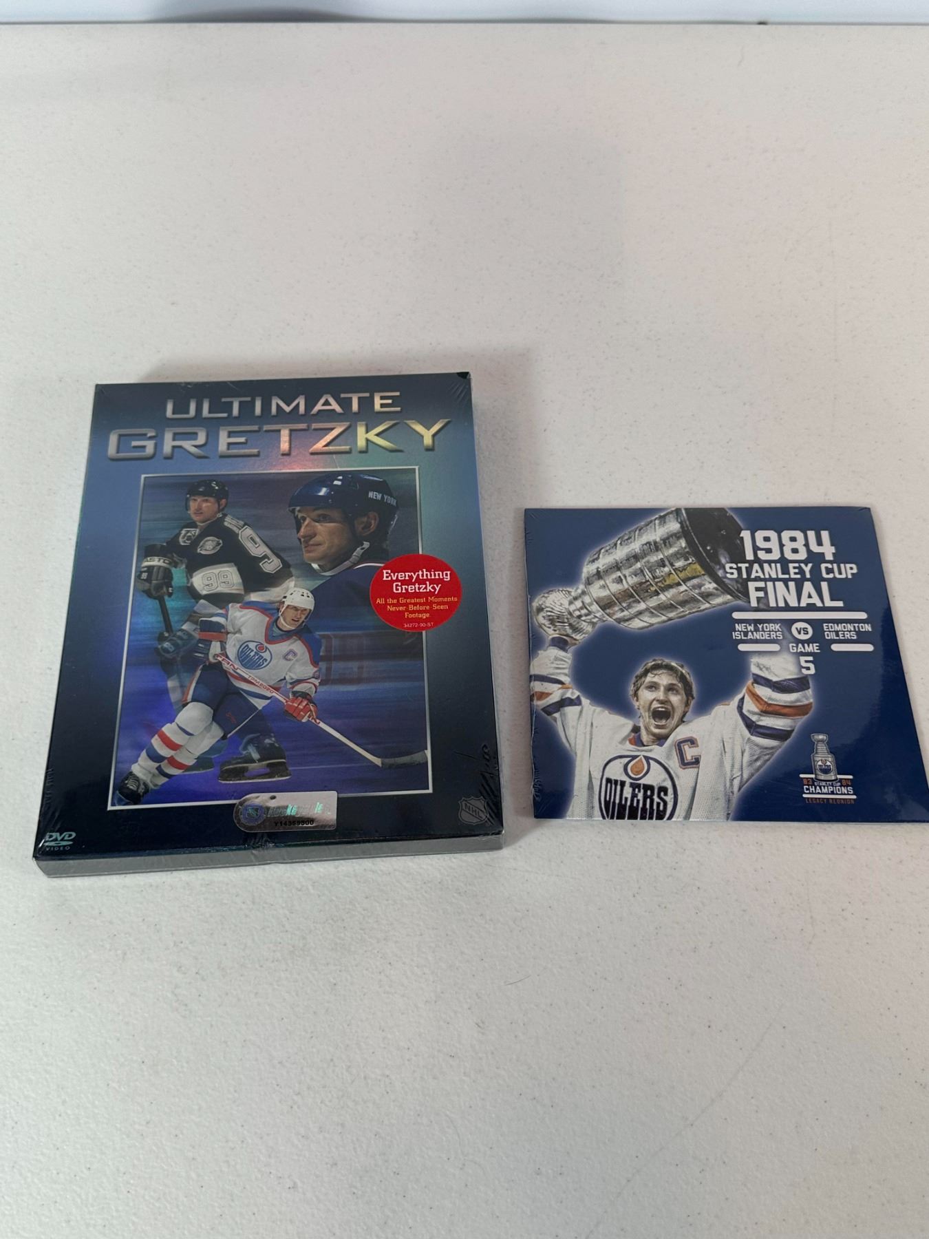 Lot of 2 Wayne Gretzky DVDs including 'Ultimate Gretzky' and 1984 Stanley Cup Final (Game 5: Islanders vs Oilers). Both appear new old stock (sealed). Great addition for Gretzky or Oilers collectors.