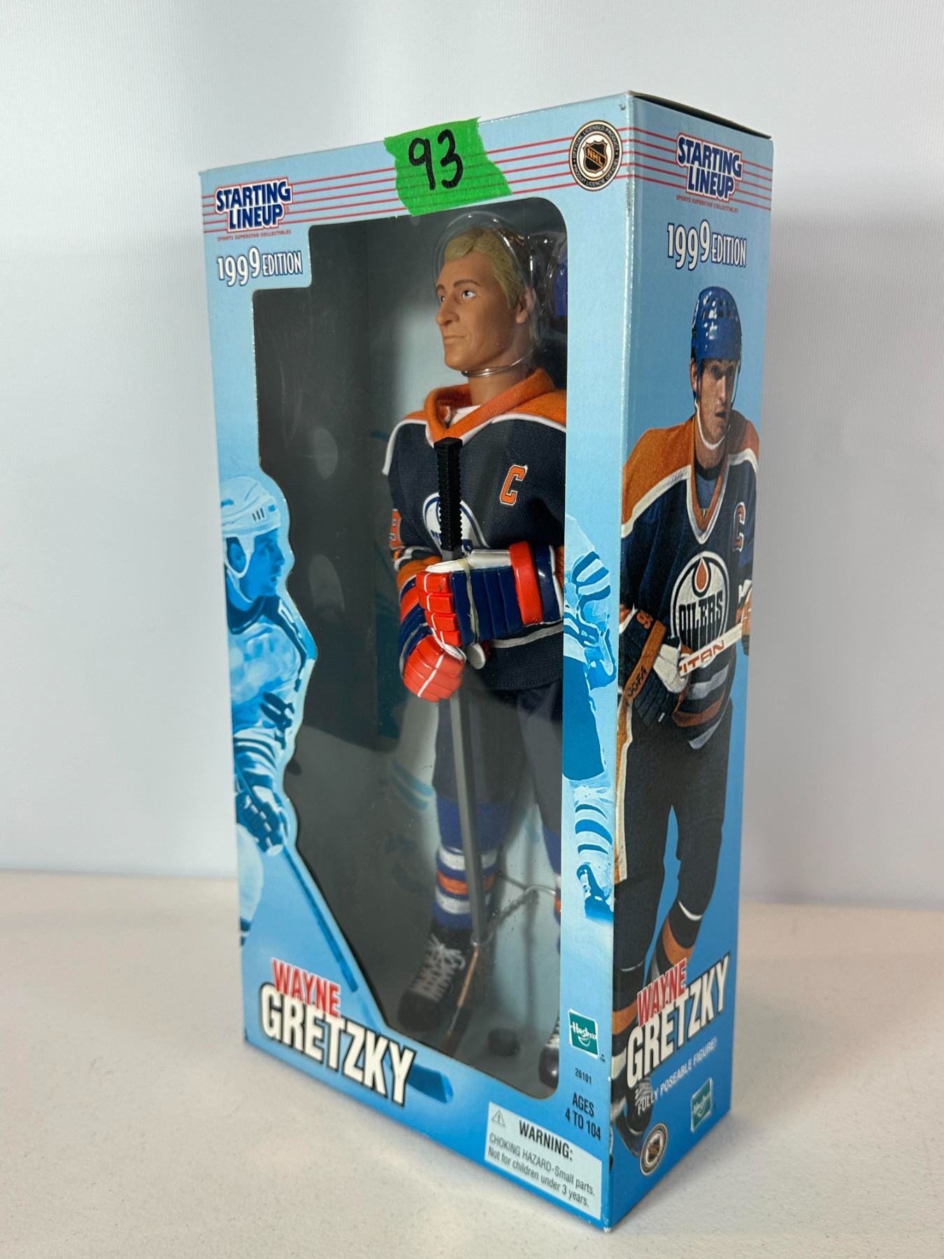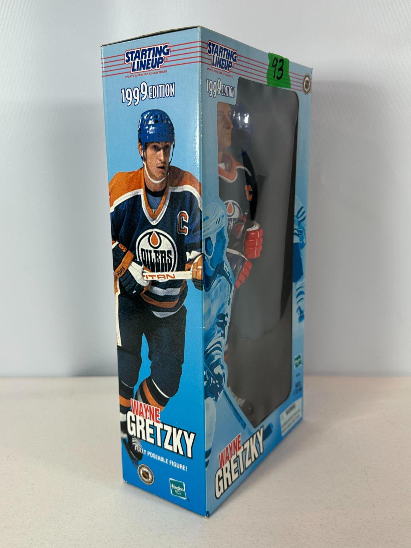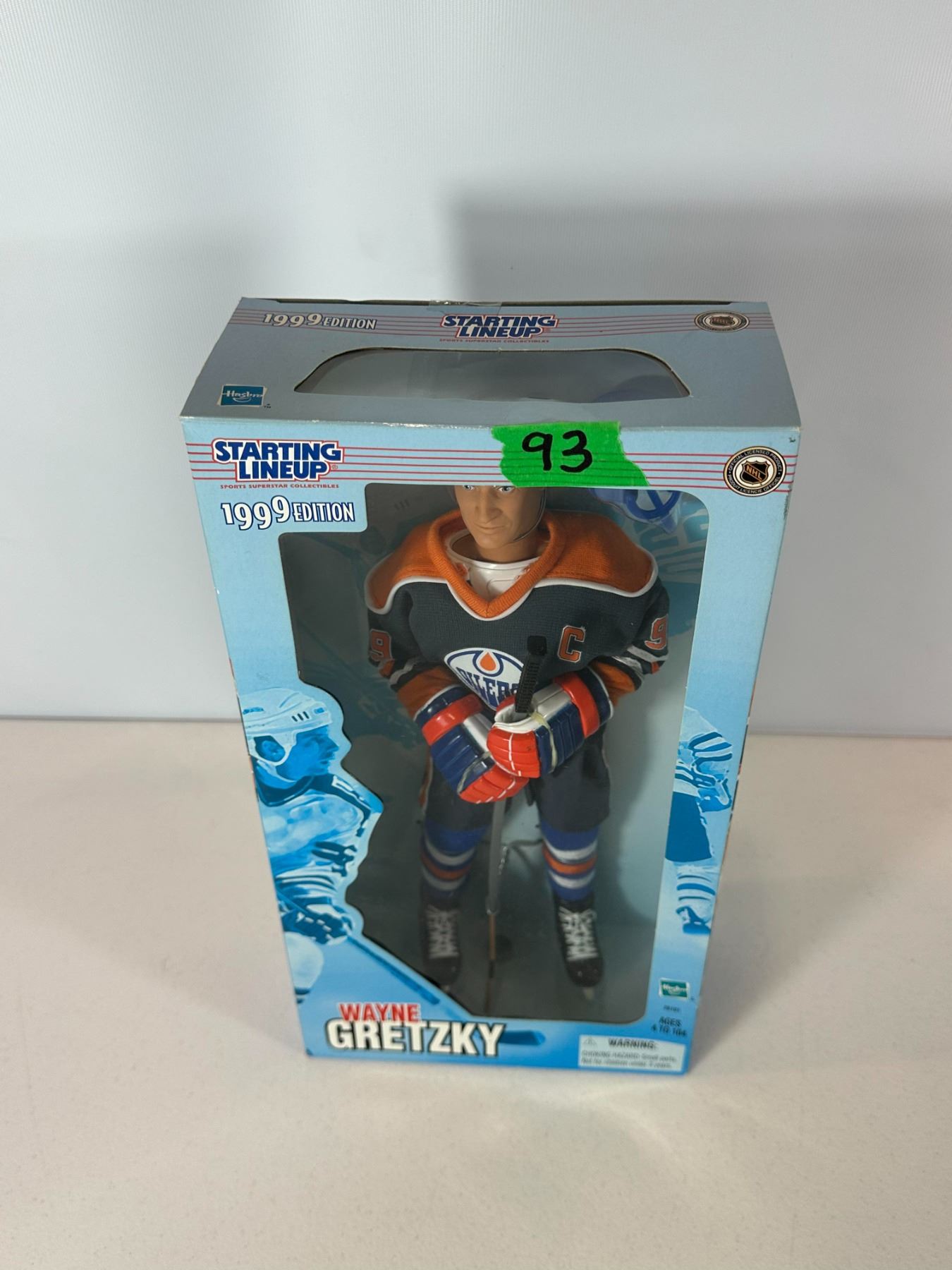 New old stock (NOS) 12-inch limited edition Wayne Gretzky action figure in Edmonton Oilers uniform. Officially licensed NHL collectible from the Starting Lineup series, complete with original packaging and accessories including helmet and stick. A classic collectible representing Gretzky’s iconic Oilers era, ideal for hockey fans and memorabilia collectors.