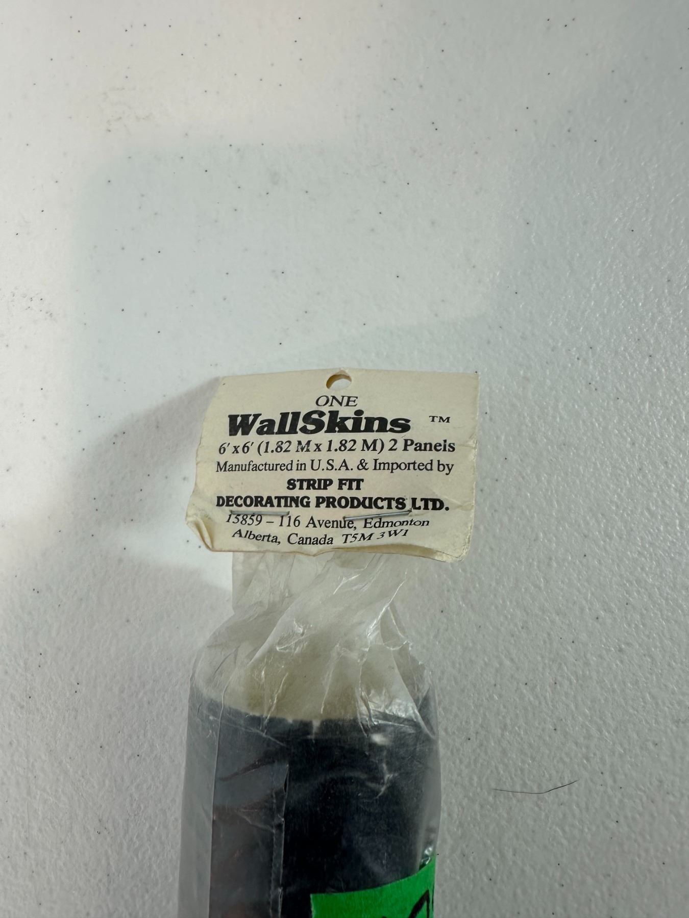 New old stock (NOS) 1983 Wayne Gretzky Edmonton Oilers wall graphic by Wallskins. Features Gretzky in classic Oilers uniform and measures approximately 6 feet by 6 feet when assembled. Comes as a 2-panel wall covering, still sealed in original packaging. Displays original labeling with 1983 copyright. A rare vintage hockey display piece from Gretzky’s early career, ideal for collectors and Oilers fans.