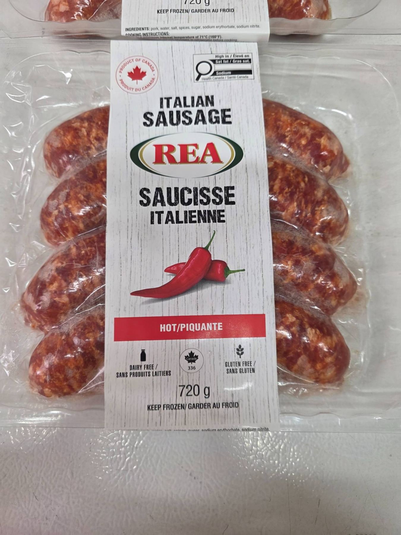 Lot 2083 Rea Italian Sausage, Hot, 720g, Two Packs of Sausages